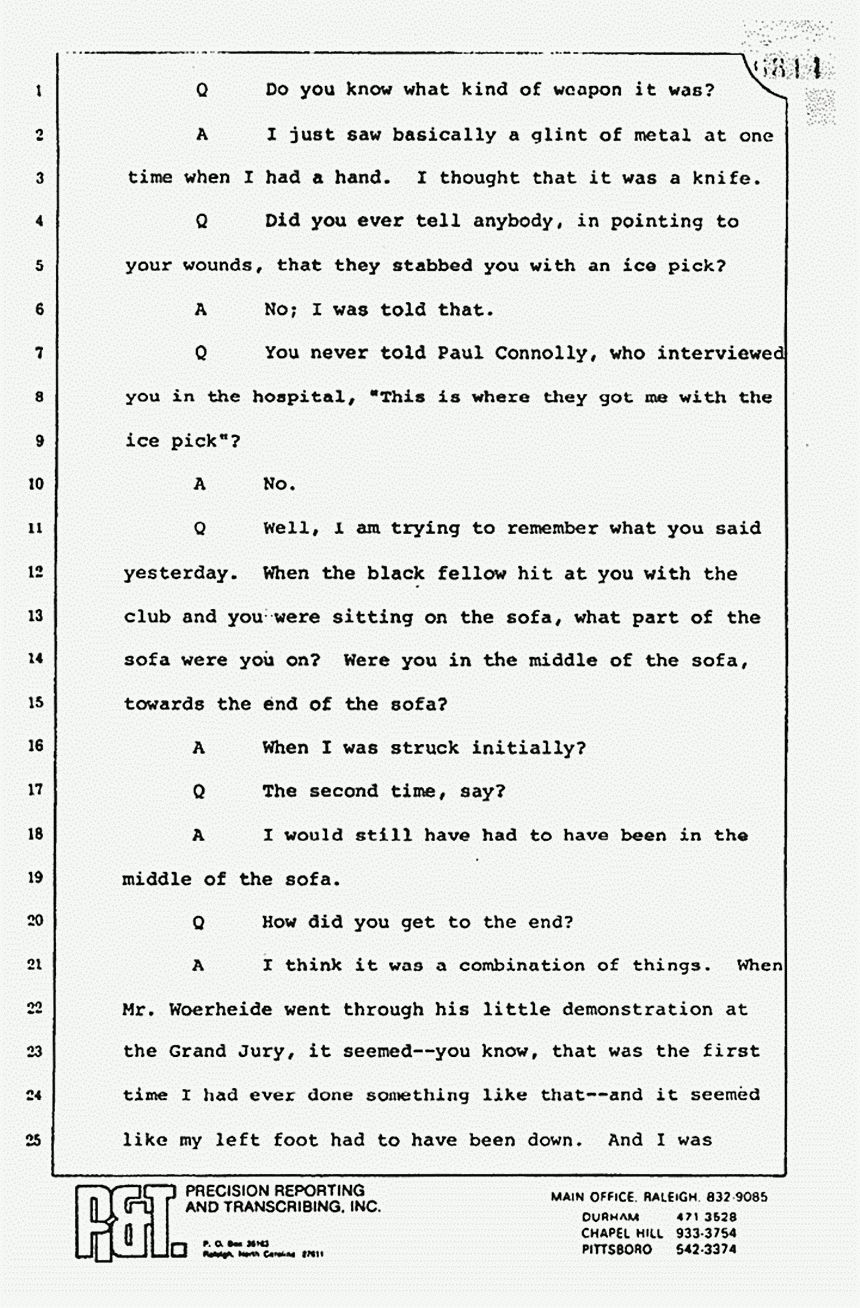 Q Now, with respect to the ice pick that was shown you late yesterday afternoon, do you recall the testimony of Mildred Kassab and Pamela Kalin, both of whom stated that they had at various times been in your kitchen and for various reasons had used an ice pick? Do you recall that testimony?