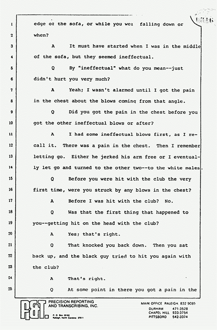 And suppose, sir, that the jury further finds that the injuries that you sustained were not consistent in degree of seriousness that they sustained, and that you are quite obviously still alive. Do you have any explanation for that?