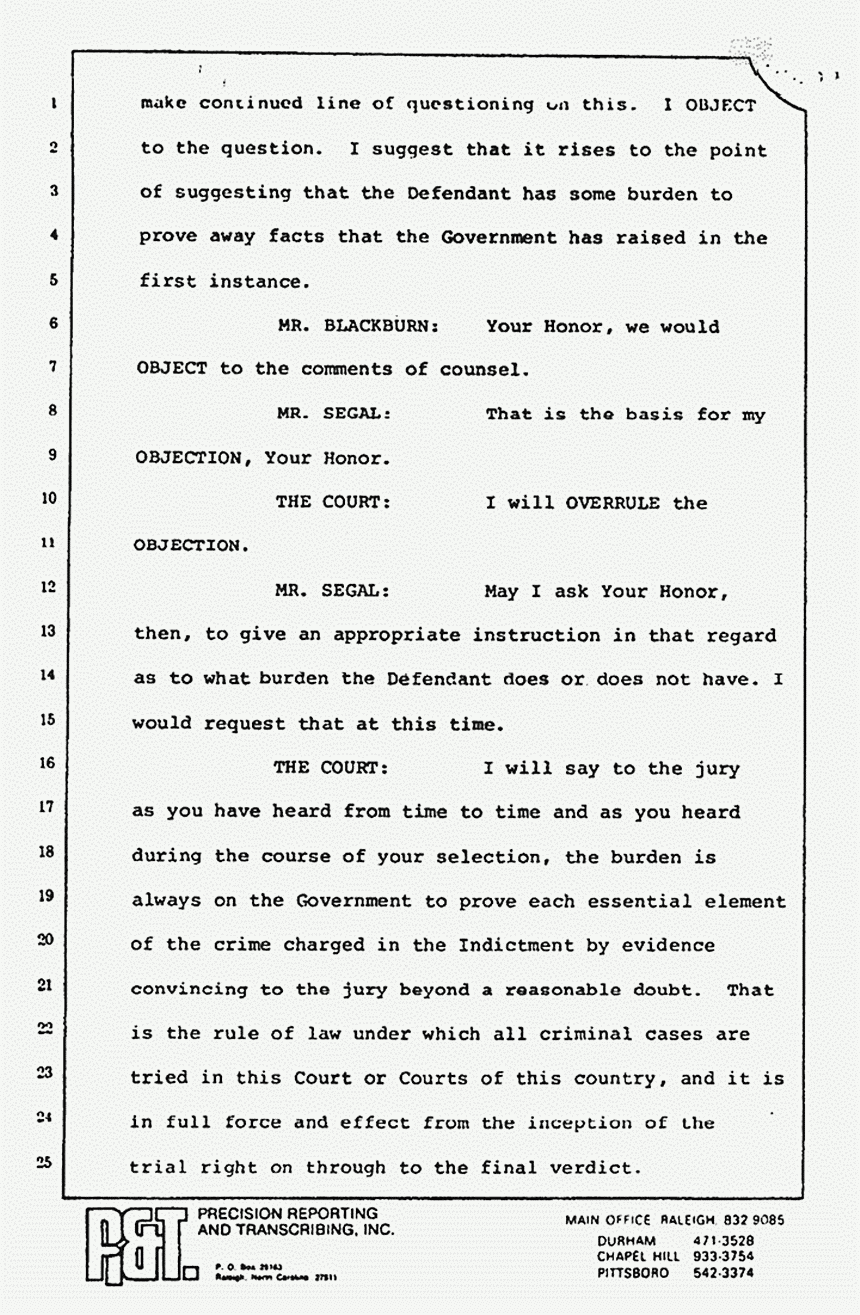 MR. SEGAL: I OBJECT most assuredly, your Honor.