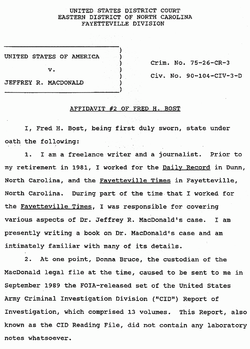 Affidavit #2 of Fred Bost re: FOIA-released CID Report