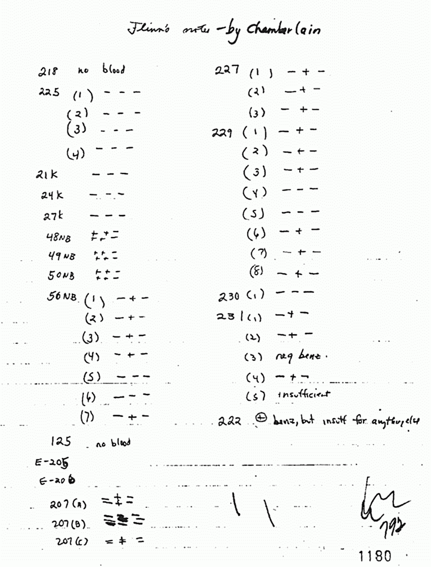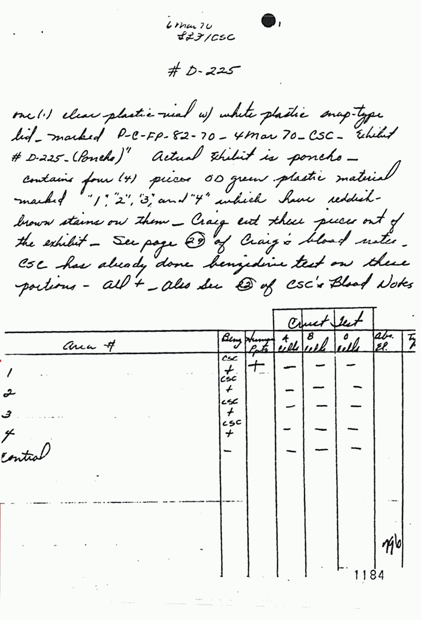Notes of Janice Glisson (CID) re: evidence examined by Glisson and Larry Flinn (CID), with cover page by Craig Chamberlain (CID)