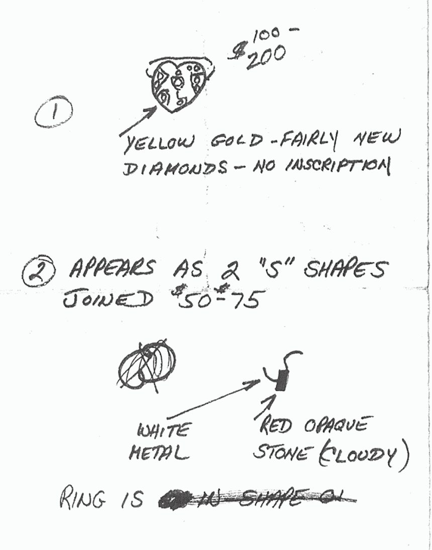 Drawings of two rings Jeffrey MacDonald claimed were missing