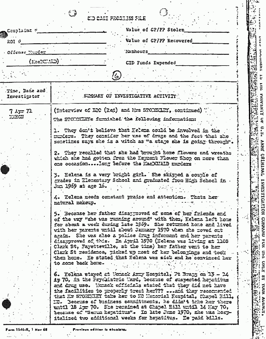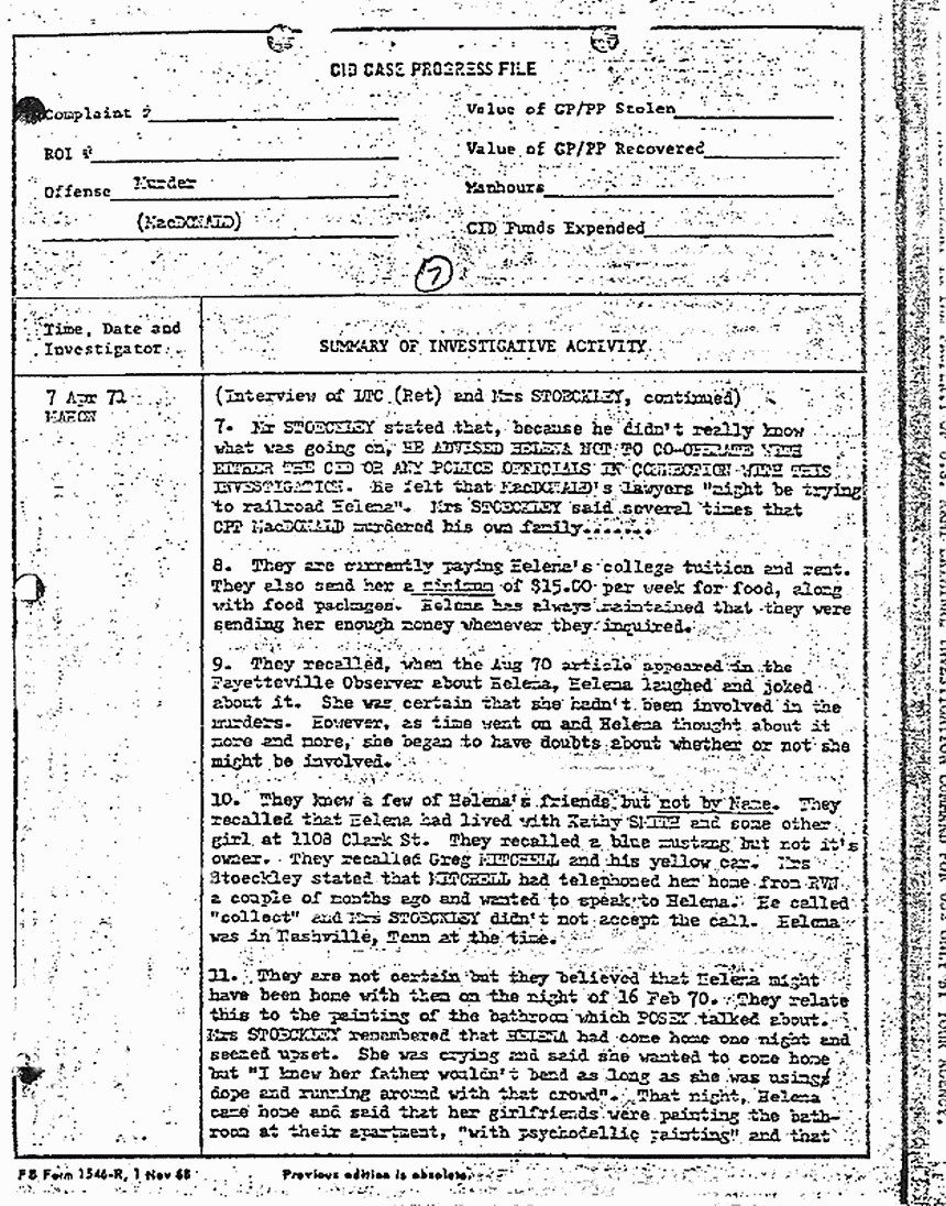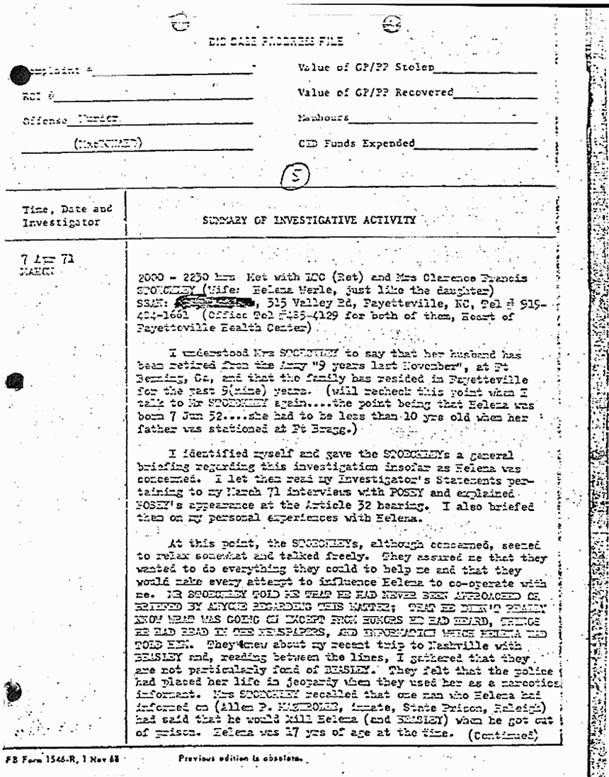 Case Progress File re: contacting Mr. and Mrs. Clarence Stoeckley