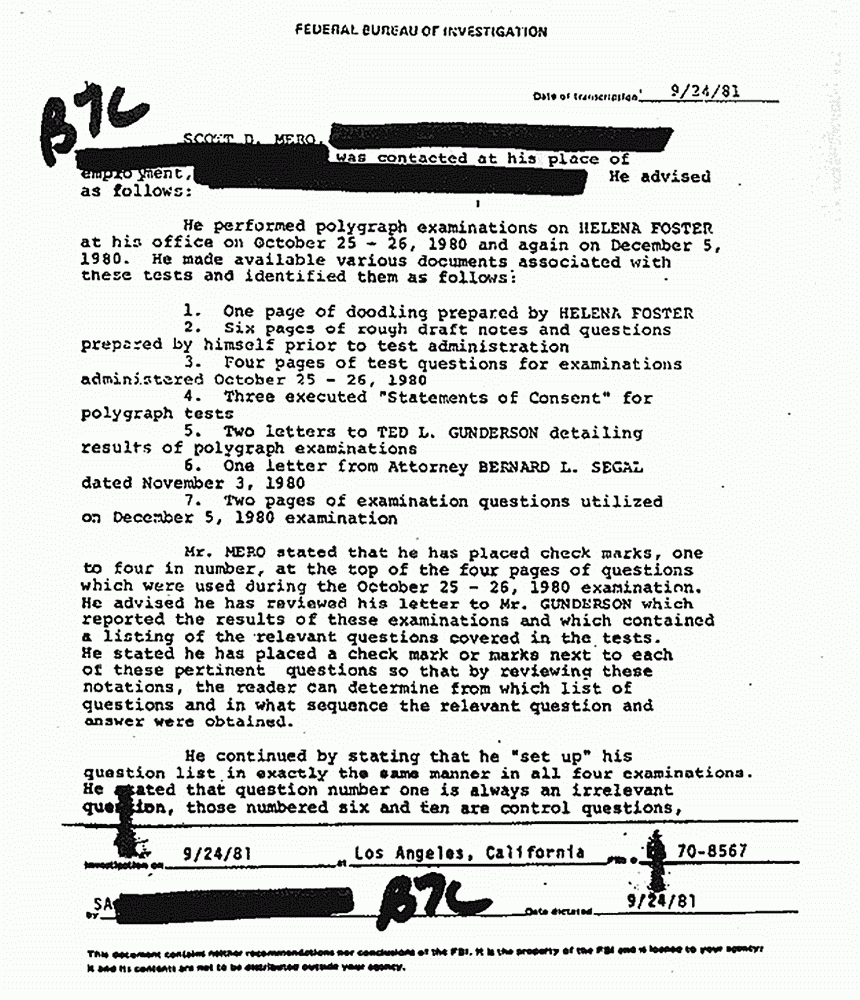 FBI File re: Scott Mero's polygraph examination of Helena Stoeckley on Oct. 25-26, 1980