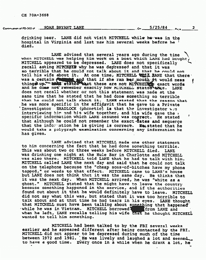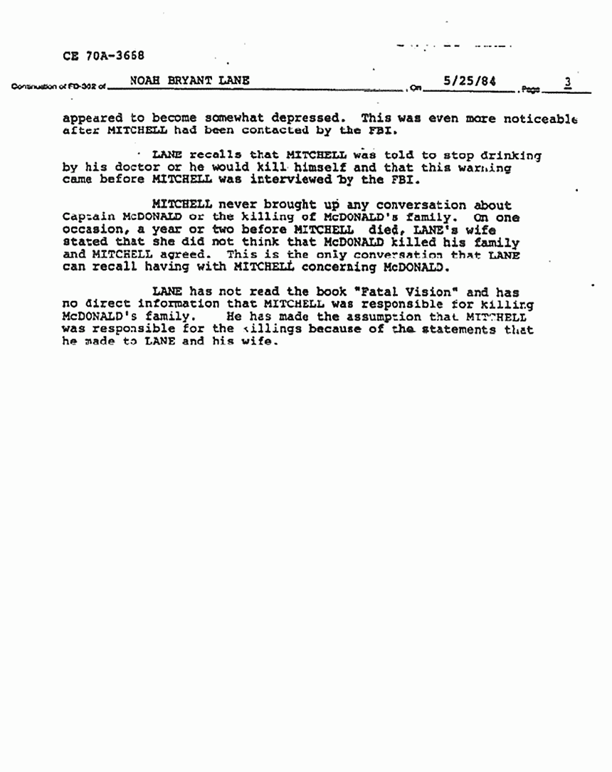 FBI File re: May 25, 1984 interview of Bryant Lane re: Greg Mitchell