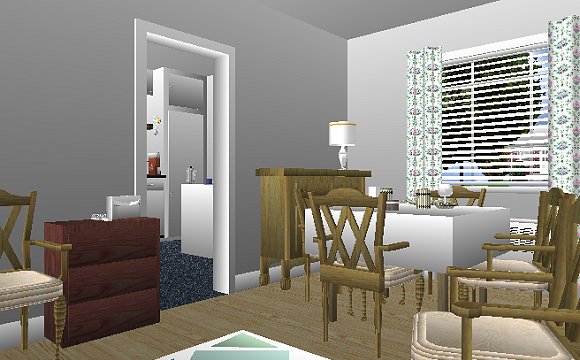 NOTE: Valentine's Day cards were located in the dining room area. Their exact location was not known to this writer at the time these 3D views ere created. A photo shown on a WRAL broadcast in August 2012 shows that in fact, the cards were located on the buffet table to the right of the kitchen entrance.