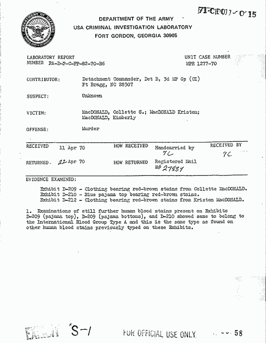 ca. April 22, 1970: USACIL Report FA-D-P-C-FP-82-70-R6