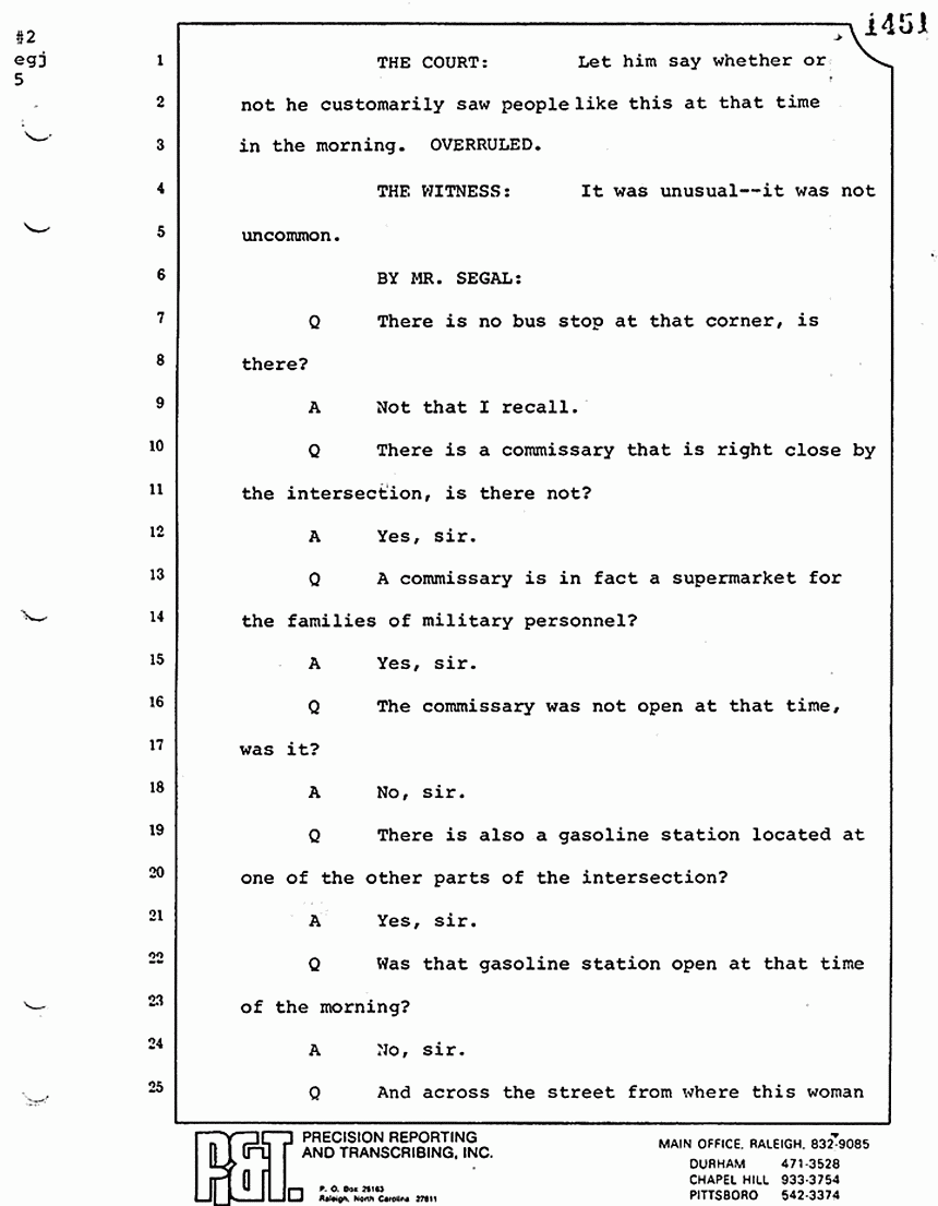 THE COURT: Let him say whether or not he customarily saw people like this at that time in the morning. OVERRULED.