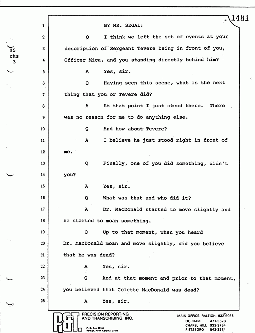 Q Mr. Mica, I believe on both Direct and cross-examination, you stated that when you were in the master bedroom, the Defendant Jeffrey MacDonald indicated that he might go into shock; is that correct?