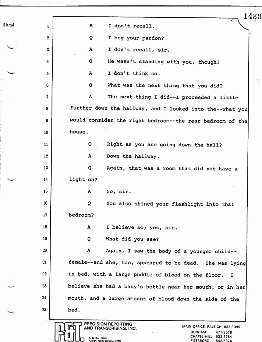 Q You had no idea at that time that you were headed to what turned out to be a triple murder and a possible assault on a fourth person?
