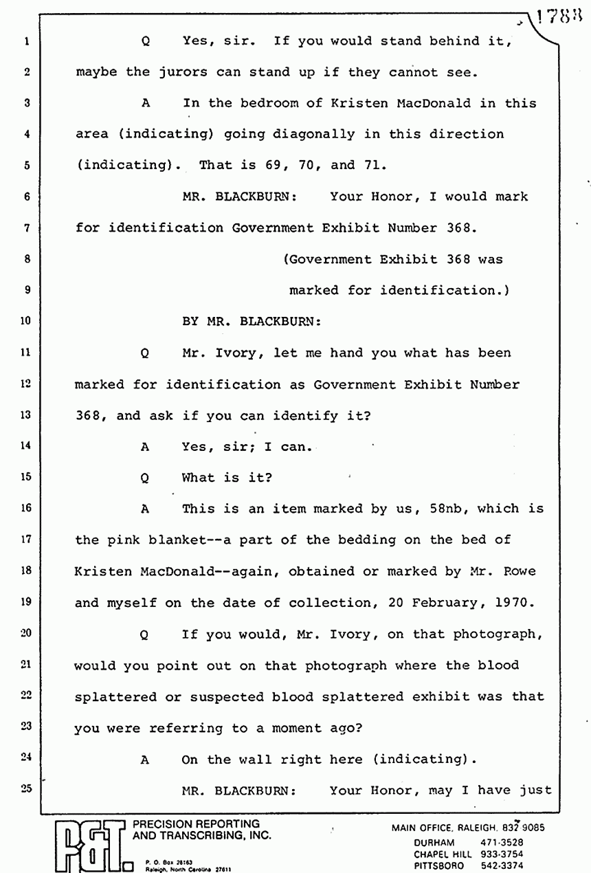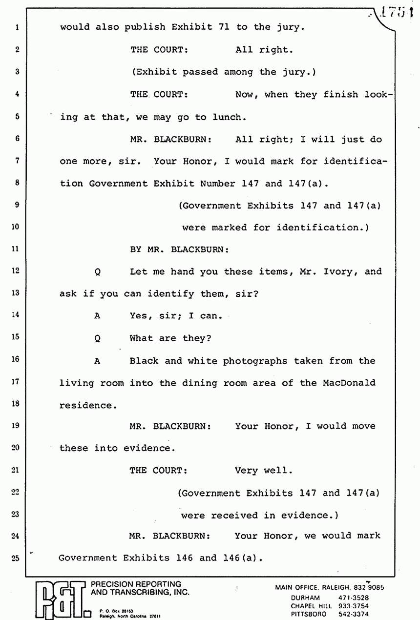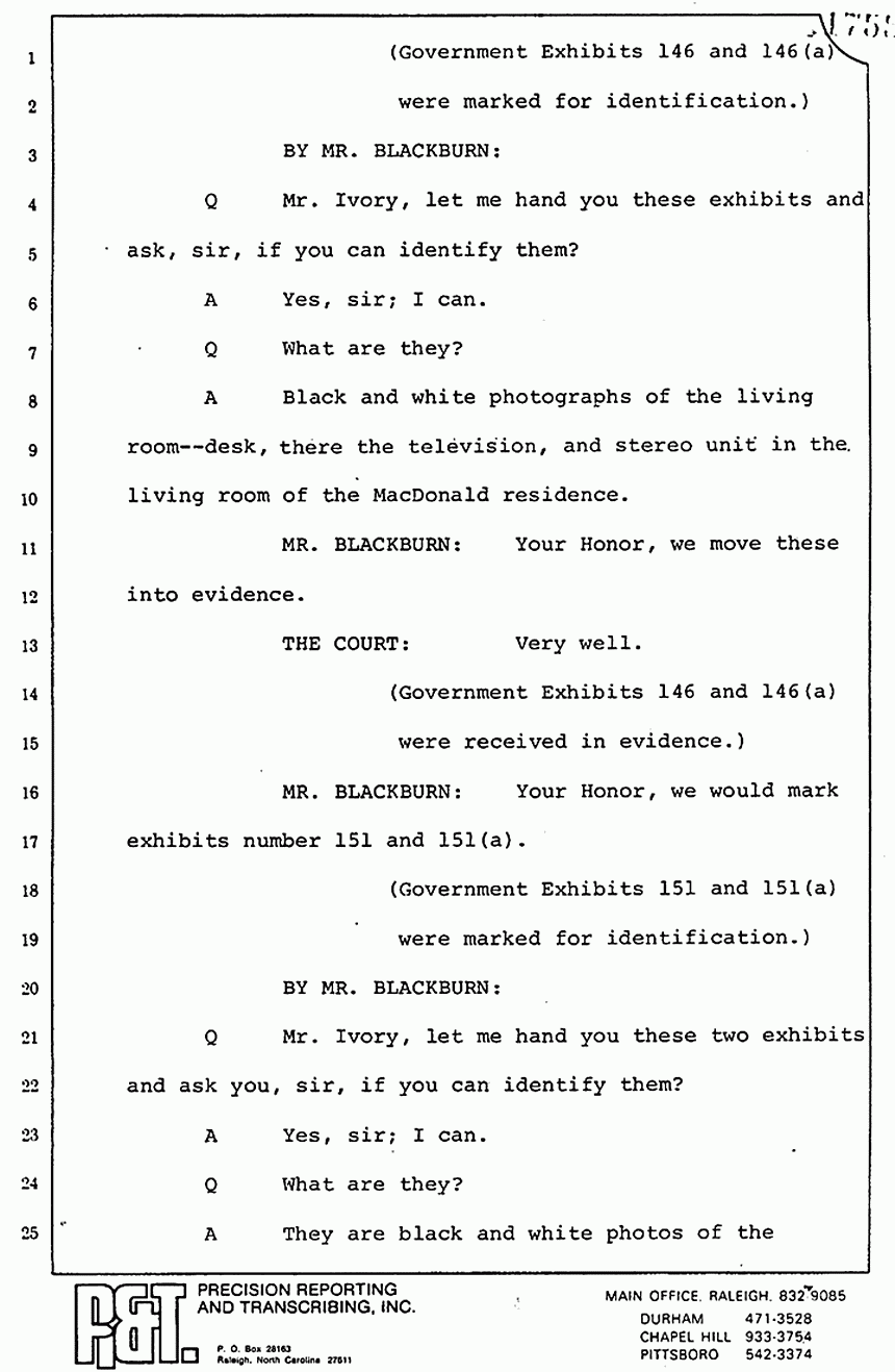 Q Mr. Ivory, as I recall, Friday afternoon you had previously testified that Mr. Squires, I believe, had done some photographing in the MacDonald apartment; is that correct?