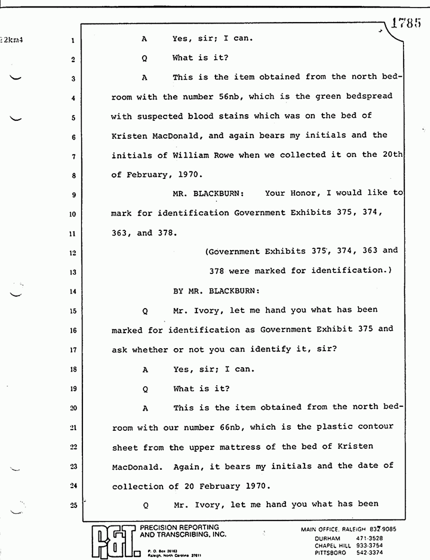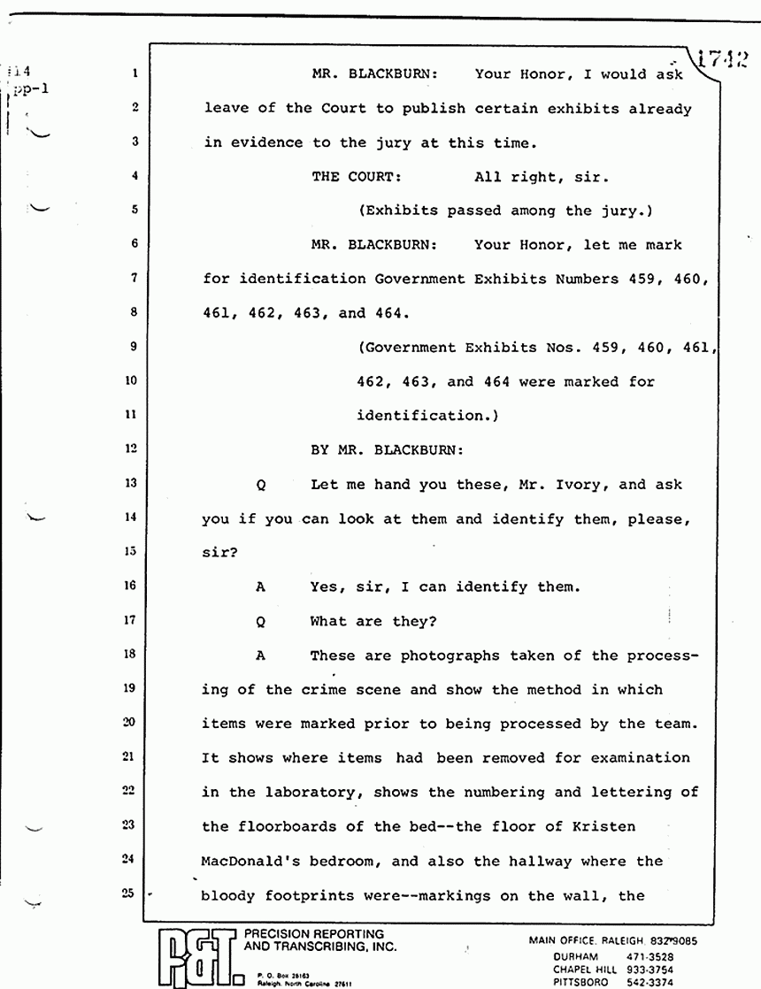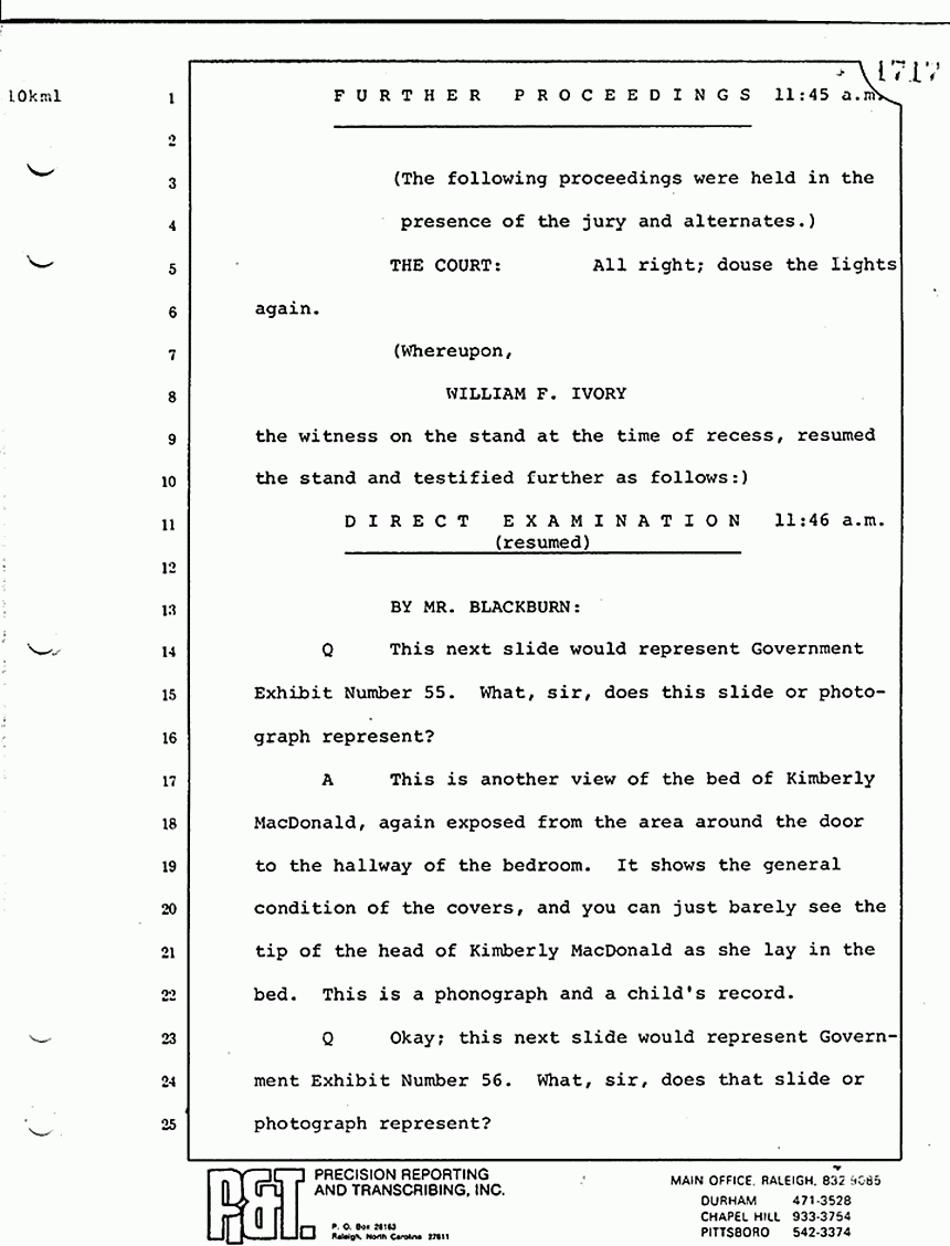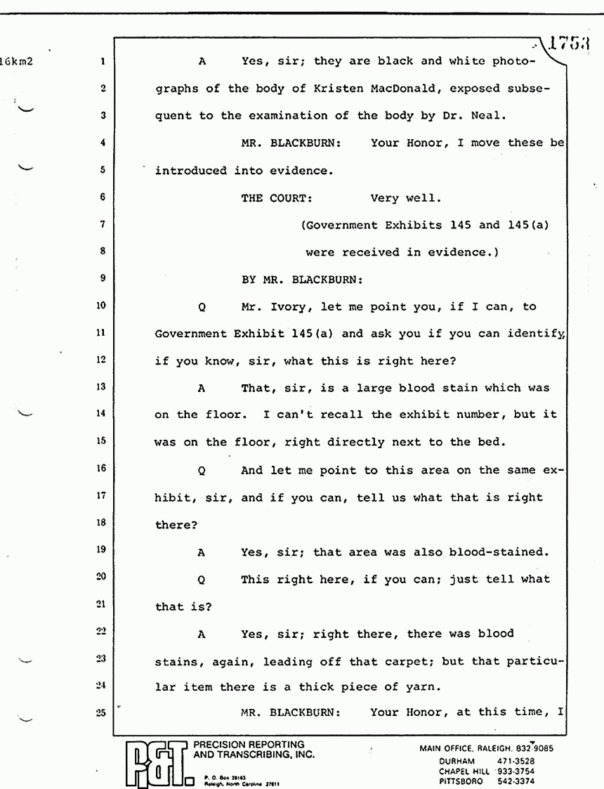 Q Mr. Ivory, as I recall, Friday afternoon you had previously testified that Mr. Squires, I believe, had done some photographing in the MacDonald apartment; is that correct?