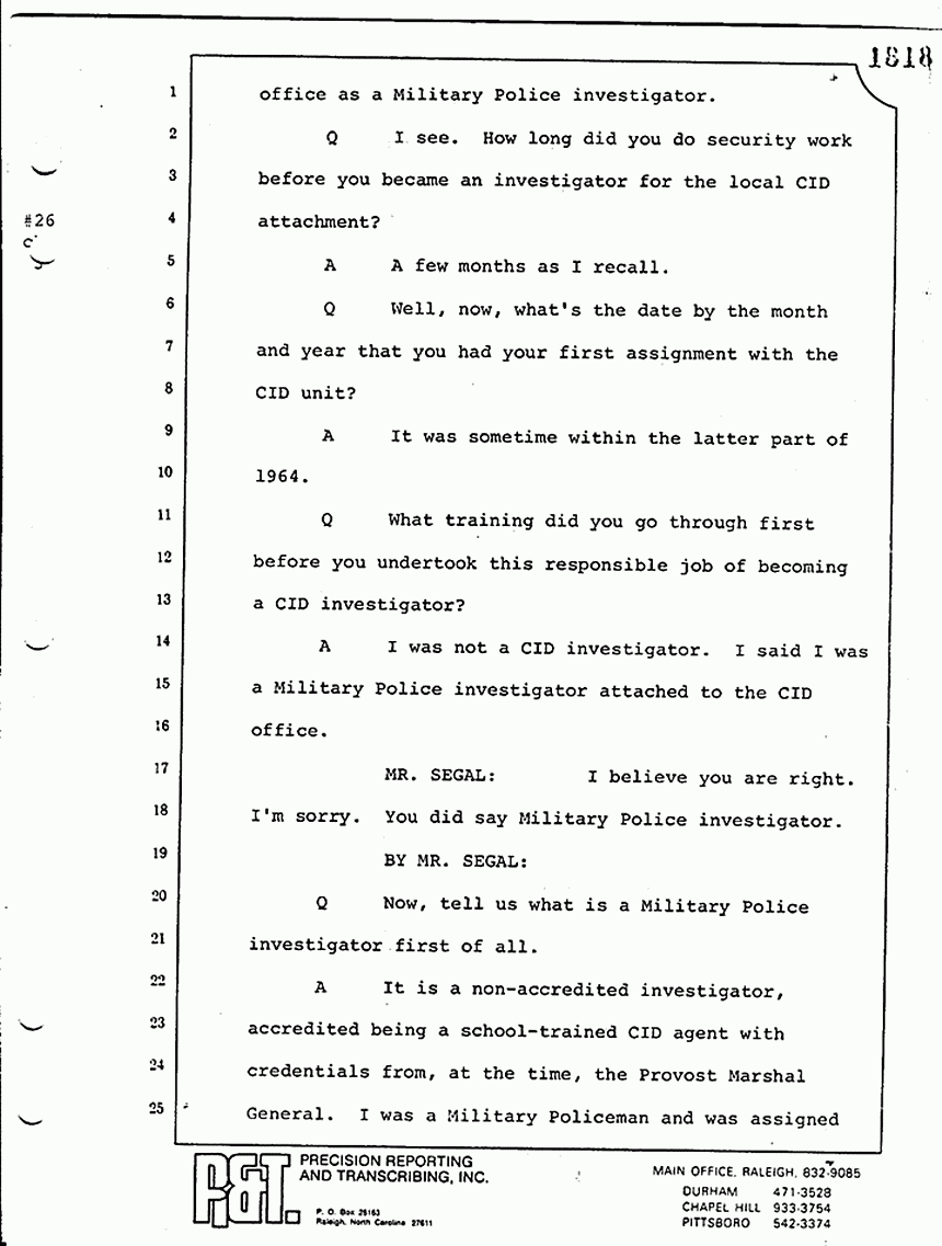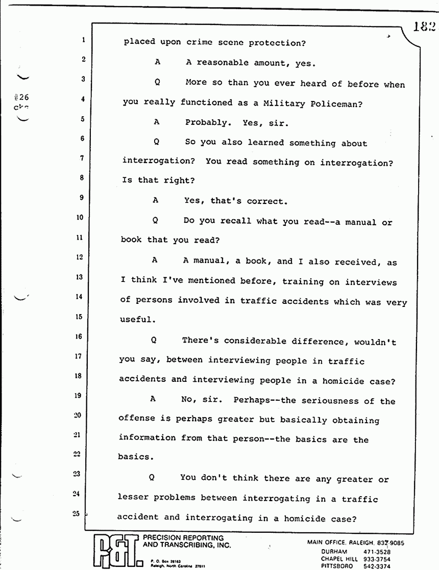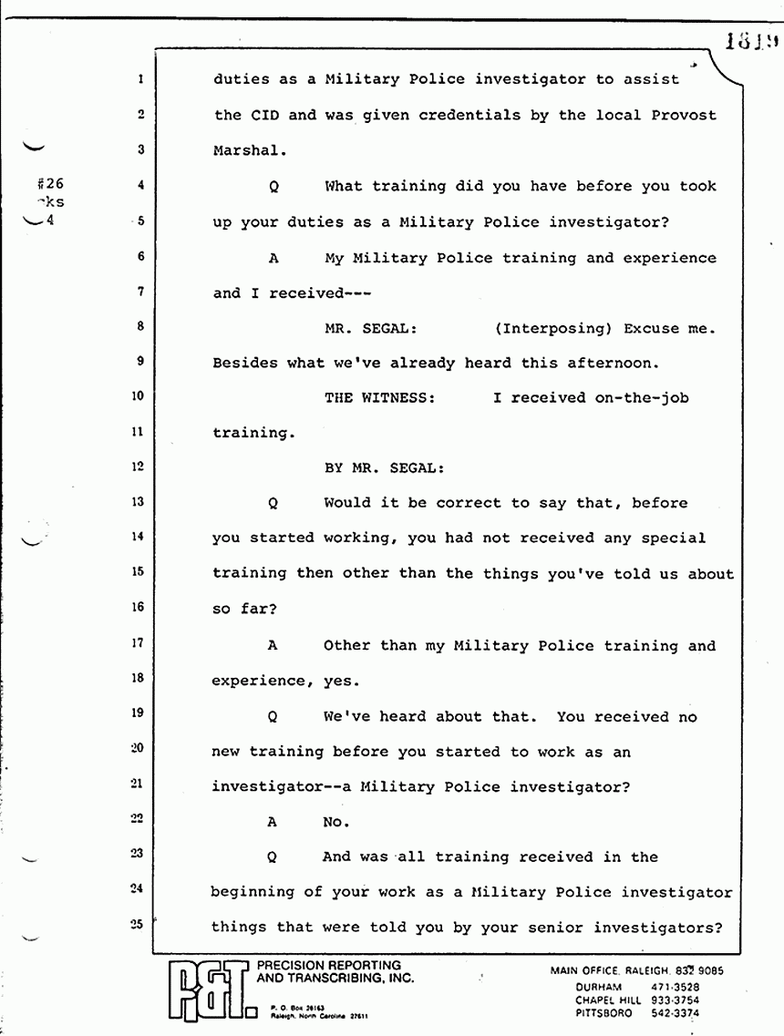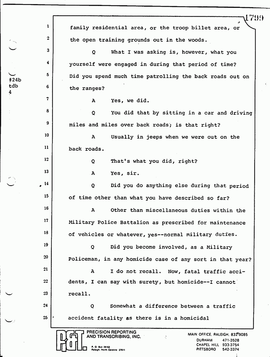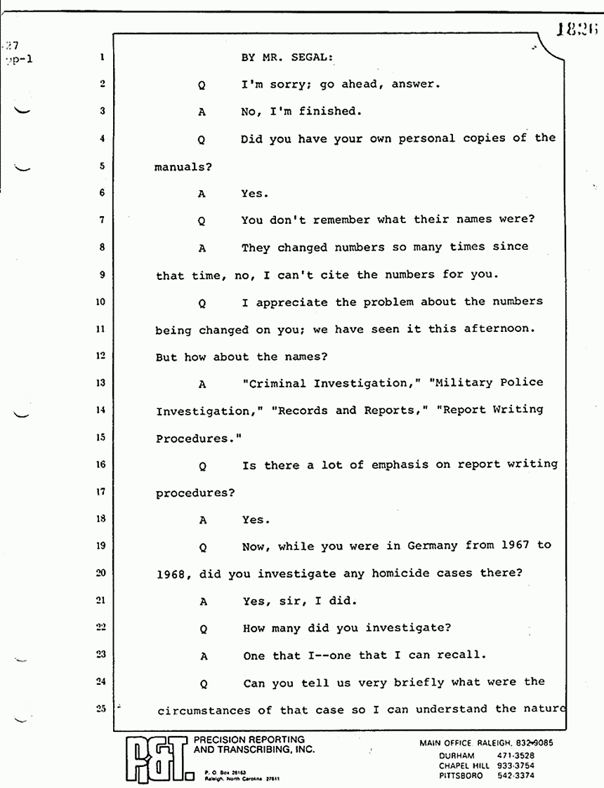 Q Did you make a note in your little investigator's notebook as to who the MPs were who were at the scene?