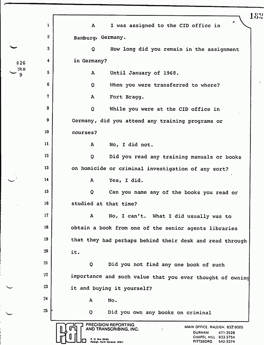 THE WITNESS: I did not see personally all the investigative assistants that arrived. They were being met at the door by either Mr. Grebner or somebody else from the office, and being dispatched from there to take up other aspects of the investigation, either at the office setting up the command post, or doing some neighborhood checks. I did not personally see all the investigative assistants that arrived.