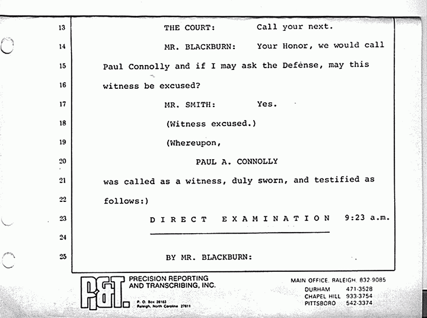 MR. BLACKBURN: Your Honor, we would call Paul Connolly and if I may ask the Defense, may this witness be excused?