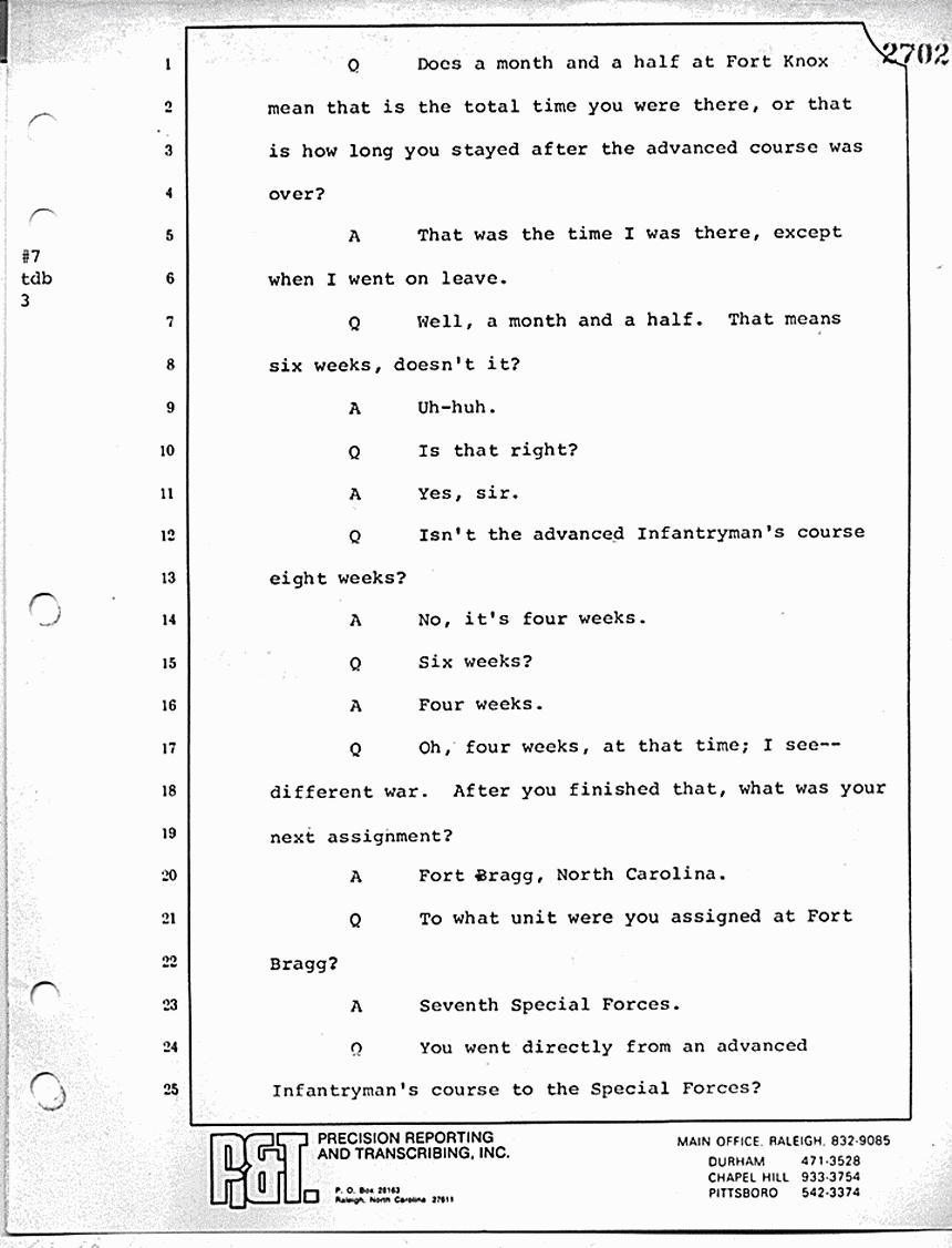 Q You were stationed at Fort Bragg at that time; weren't you?