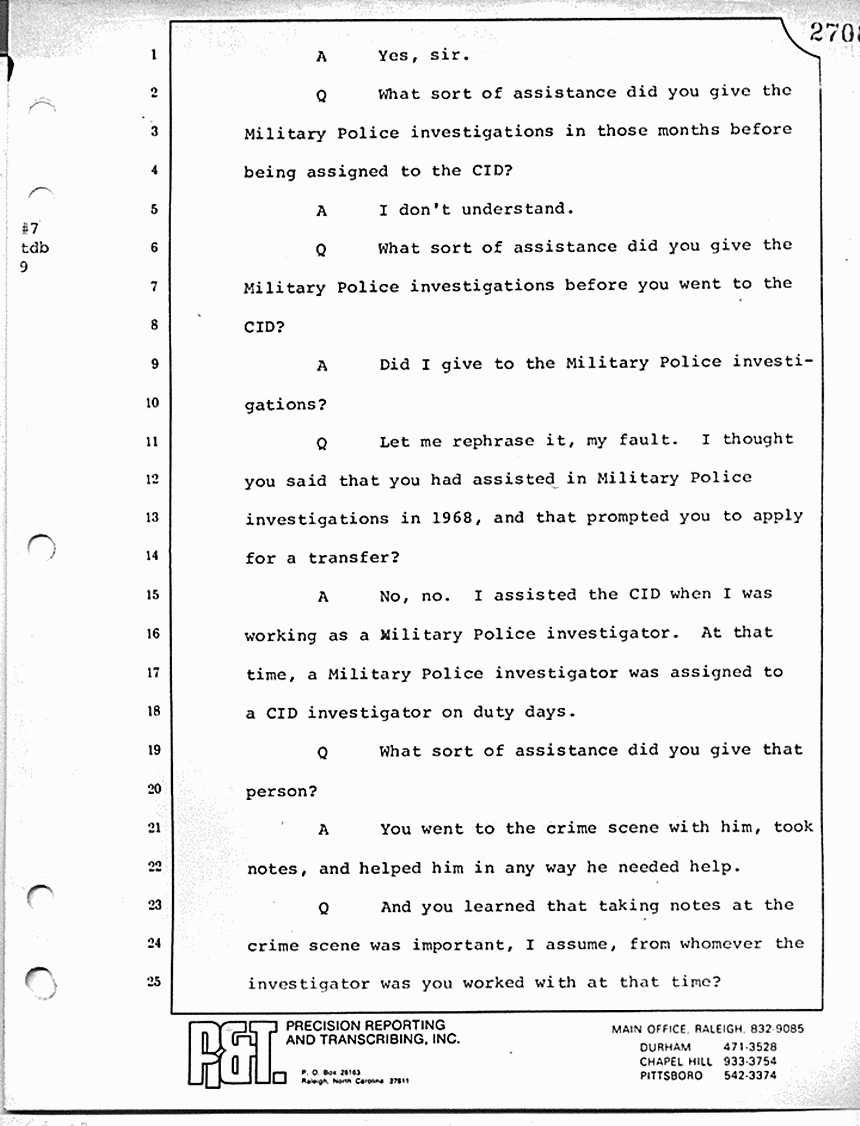 Q Do you recall that? Do you recall being interviewed by a uniformed officer who was assigned as assistant defense counsel in the MacDonald case in 1970?