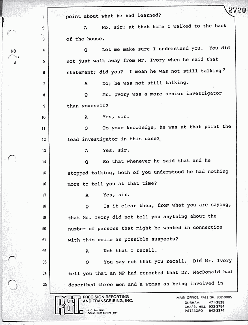 Q Oh, I see. The chief investigator was Mr. Ivory?