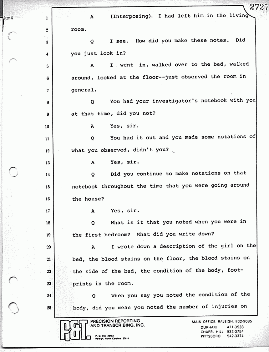 Q Now, who, if anyone, was accompanying you as you went through the crime scene?