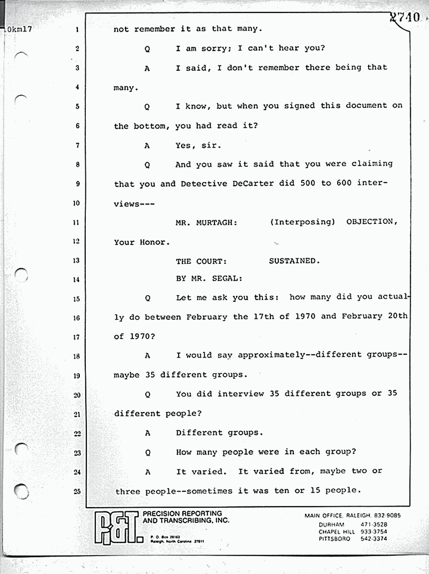 A I said I didn't -- I don't remember -- it is in the statement, but I don't believe I did that many people. It was different groups; it was hard to tell how many people were interviewed.