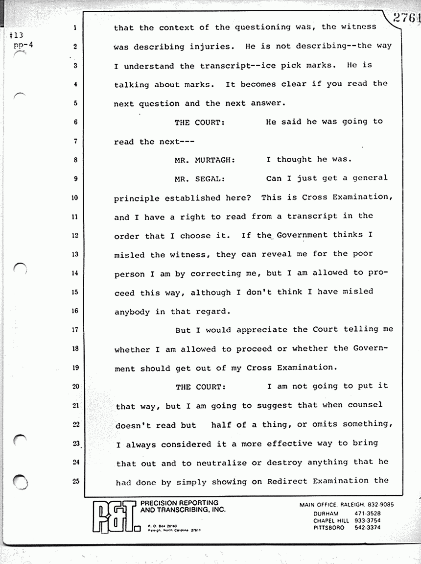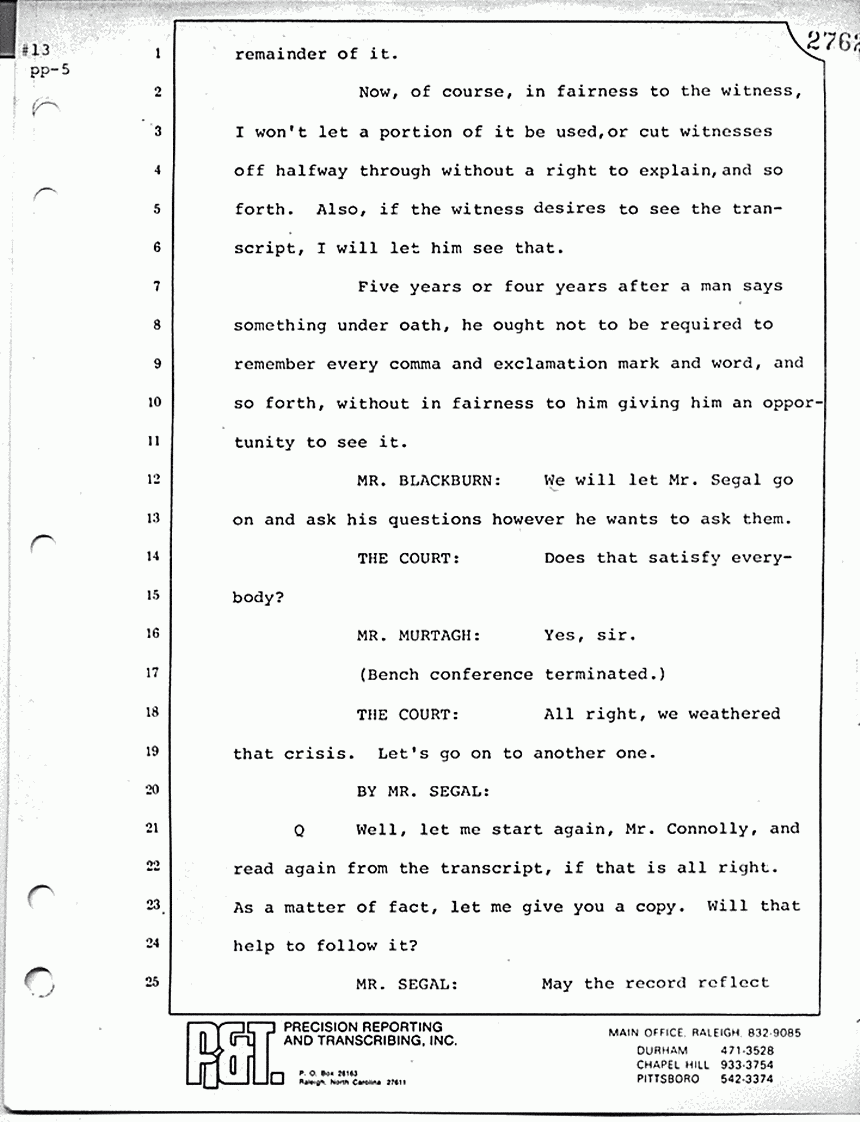 MR. SEGAL: Well, if the Government will let us have a copy of the transcript they are buying, we'll be glad to read it back.