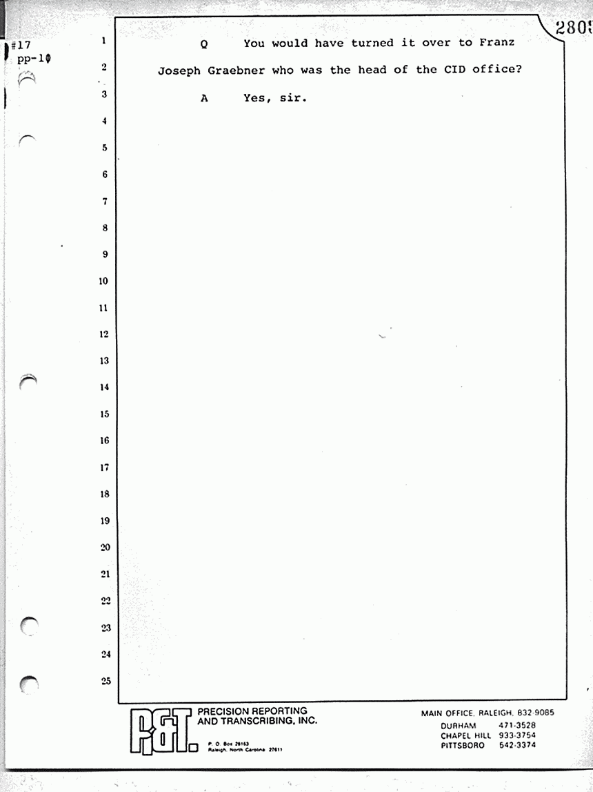 Q You would have turned it over to Franz Joseph Grebner who was the head of the CID officer?