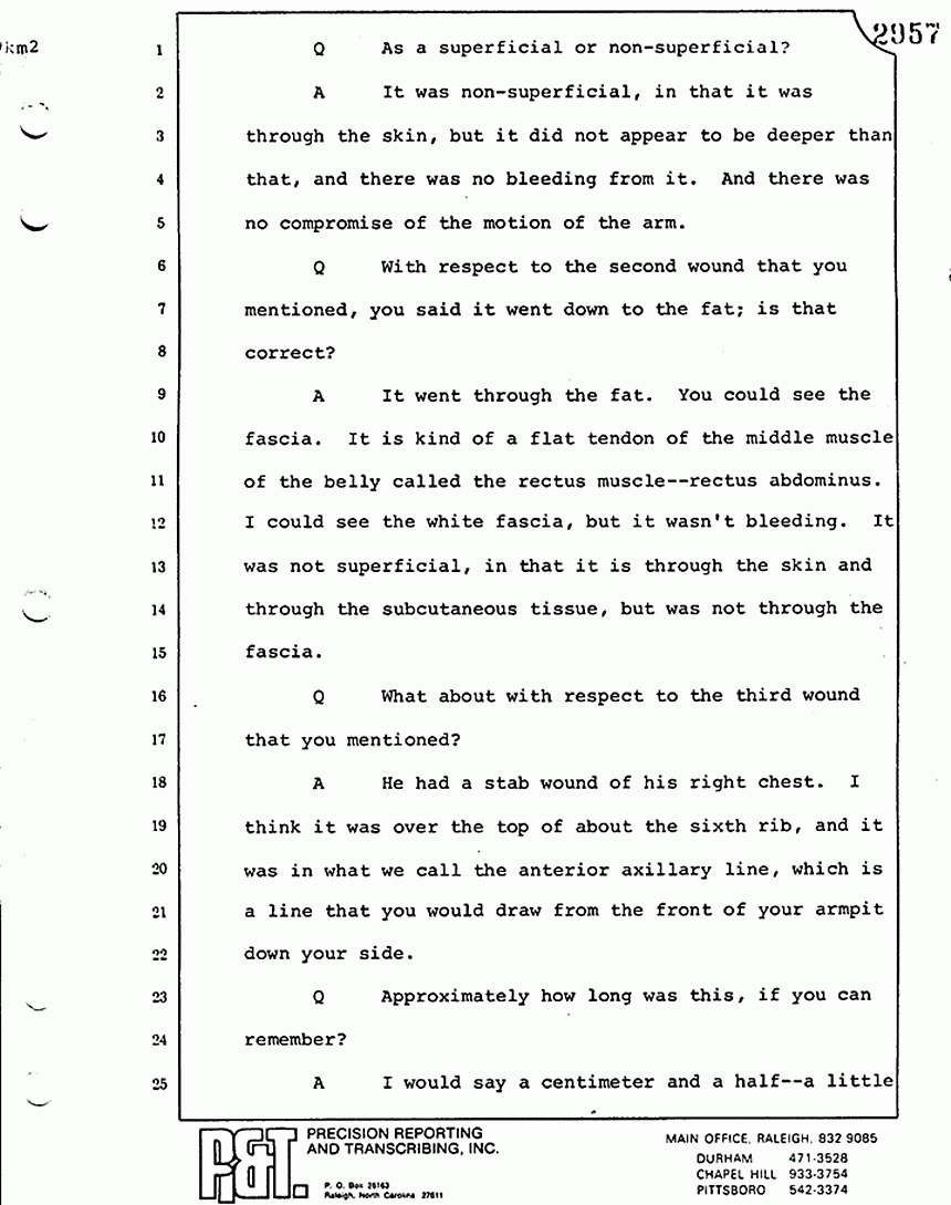 Q With respect to the second wound that you mentioned, you said it went down to the fat; is that correct?