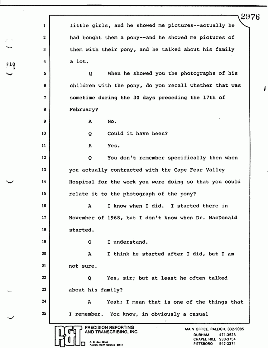 Q When did you first actually see Dr. MacDonald? Is that when you first saw him?