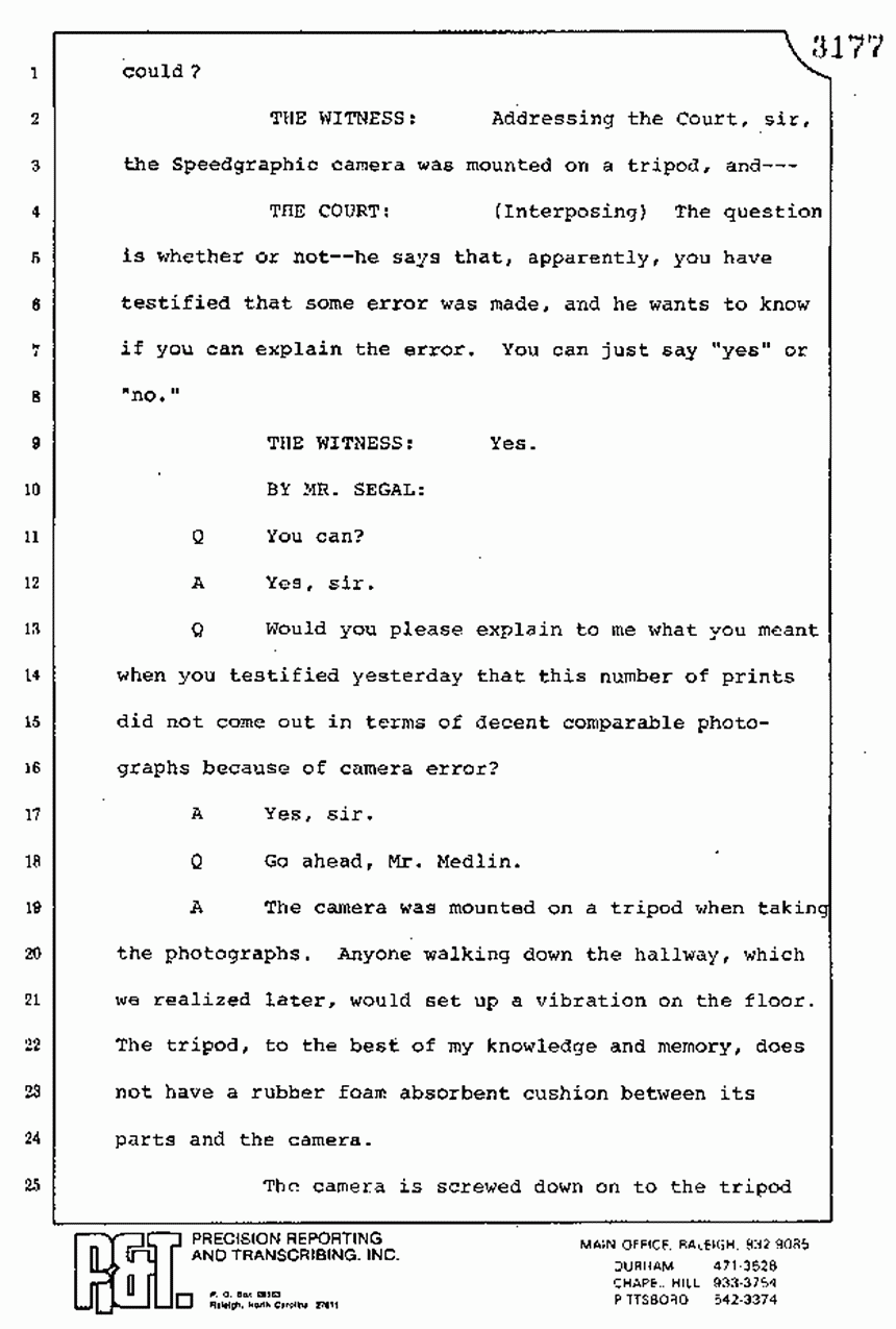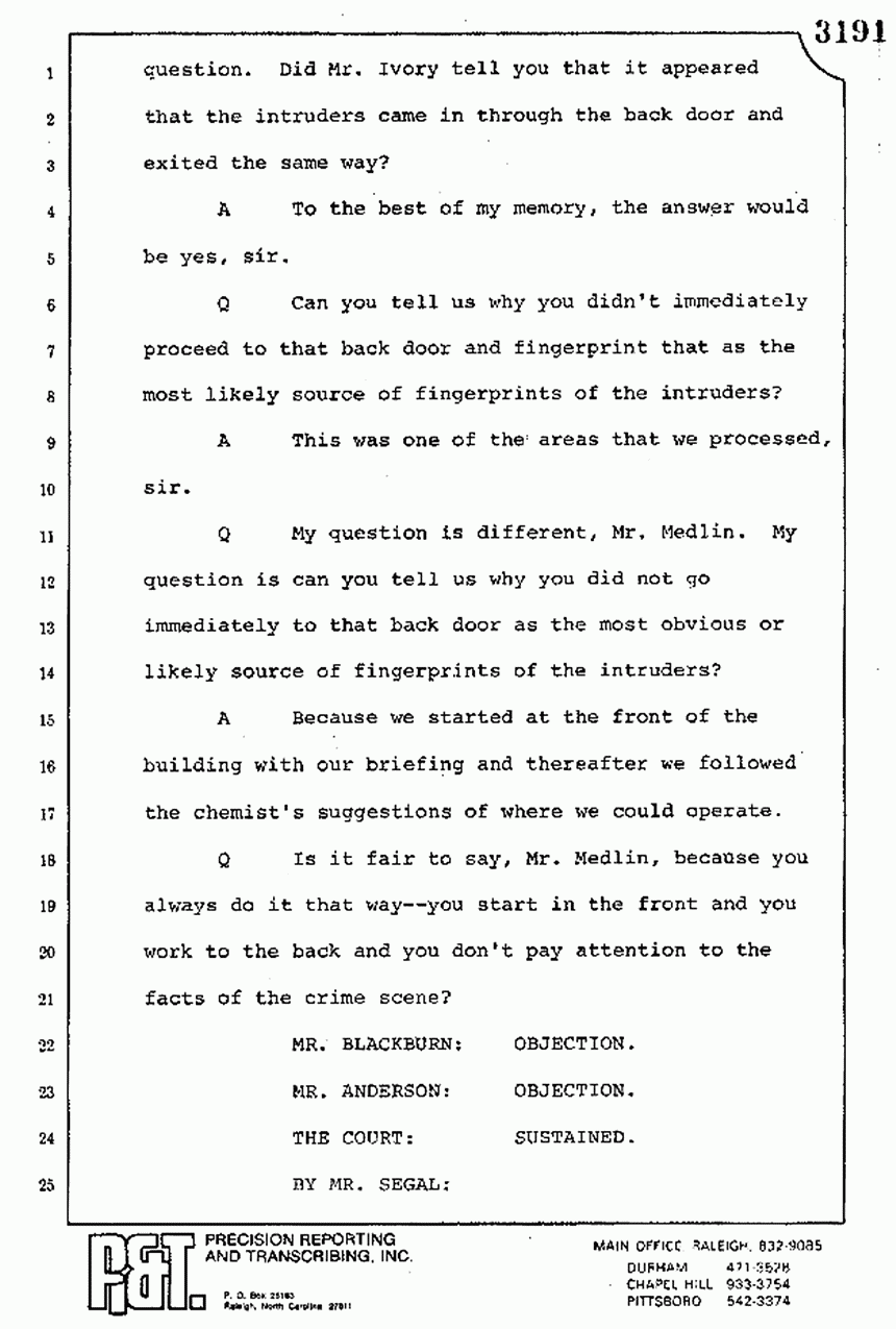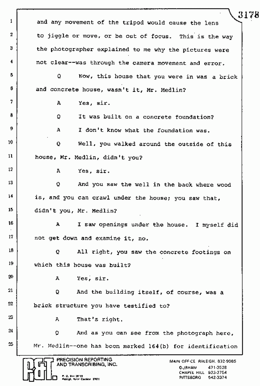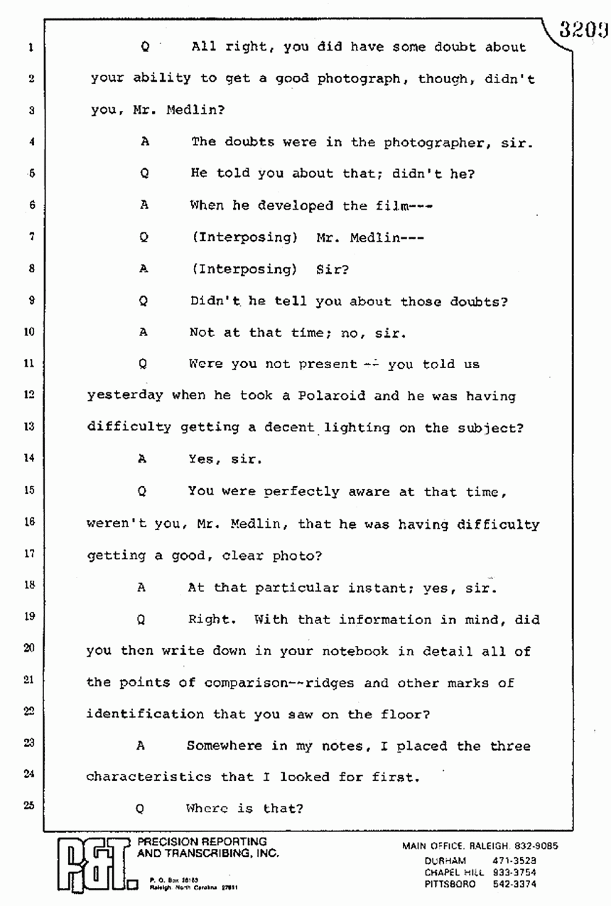 Q Mr. Medlin, I believe when we broke yesterday afternoon, you had just finished testifying about dusting for prints on the telephone. Do you recall that?