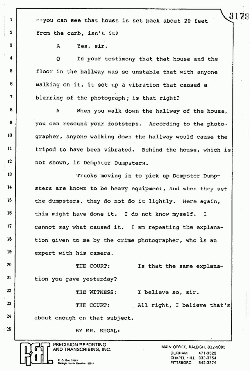 Q Now, you testified on Direct and Cross-Examination with regard to the photography shots of the house. When it was discovered that through camera error or whatever that some photographs did not show the prints to be totally identifiable, what, if anything, was done to rectify that situation at a subsequent time?