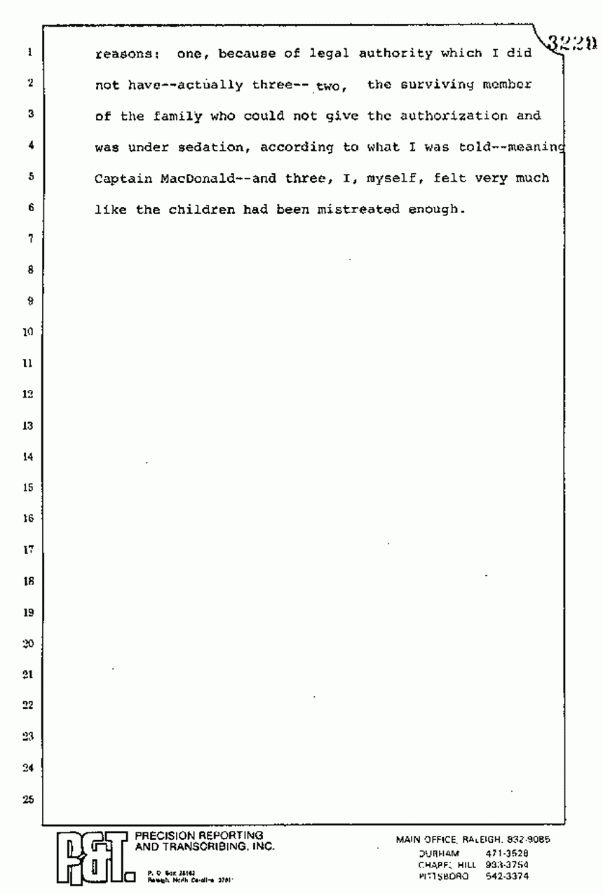A They belonged to Captain MacDonald, Mrs. Colette MacDonald and Lieutenant Harrison predominantly.