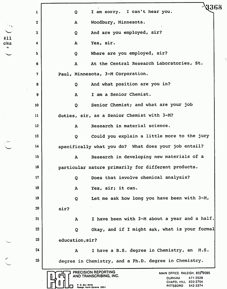 Q Senior Chemist; and what are your job duties, sir, as a Senior Chemist with 3-M?