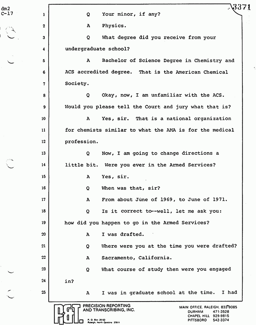 A Most of the techniques that were used in the analysis of blood stains were also techniques I had learned about in school. That is, the application of the techniques I had learned in school in a general sense were just applied to specific analysis such as blood stain analysis in the Army.