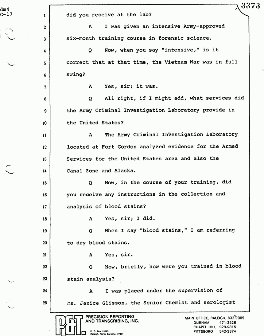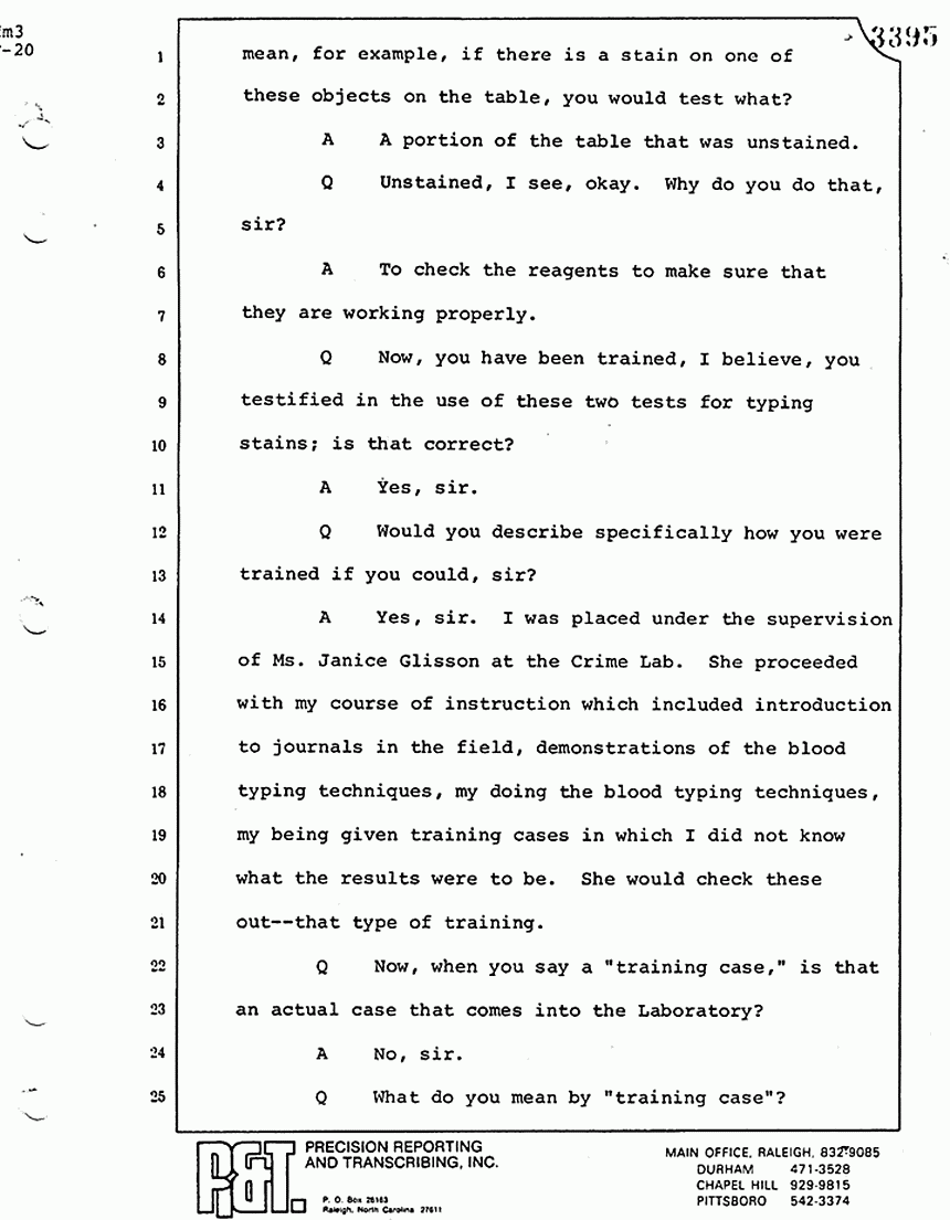Q Now, briefly, how were you trained in blood stain analysis?
