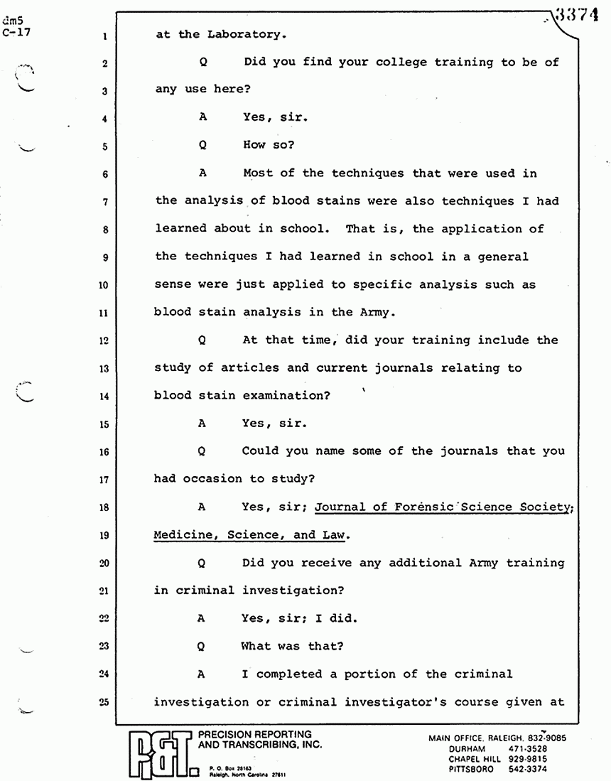 Q At that time, did your training include the study of articles and current journals relating to blood stain examination?