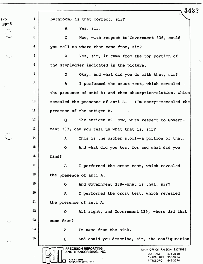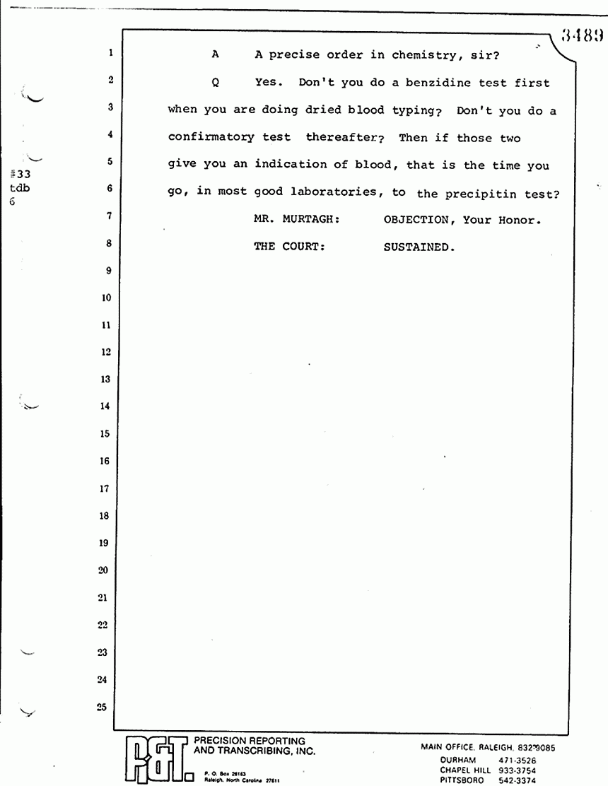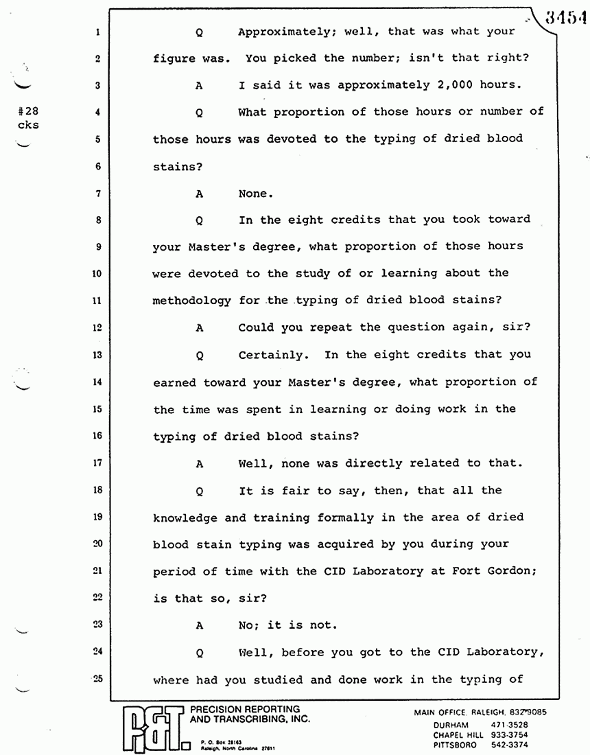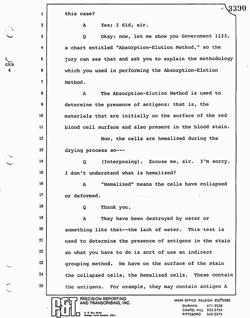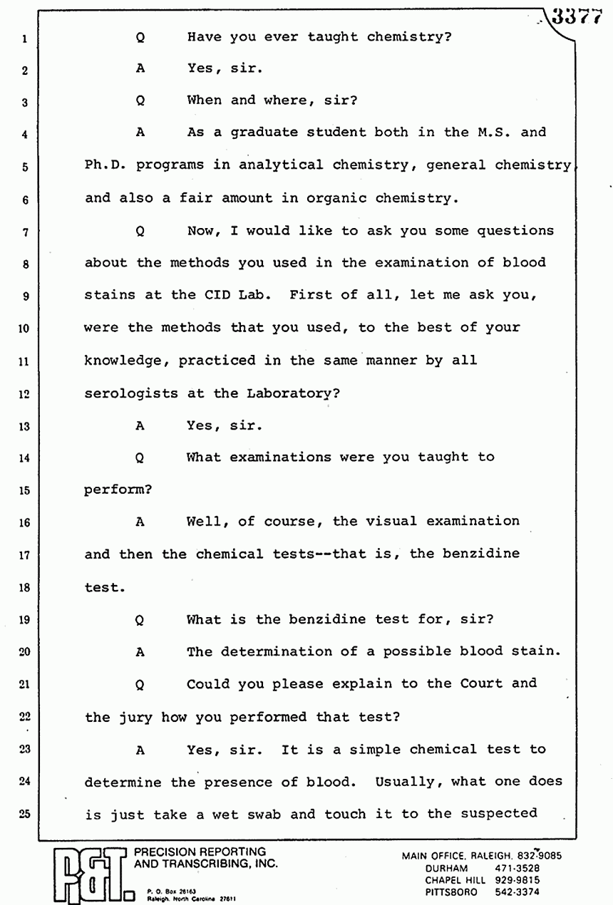 Q Is it your belief that you made no error in the processing of blood stains that you have testified to here in court today?