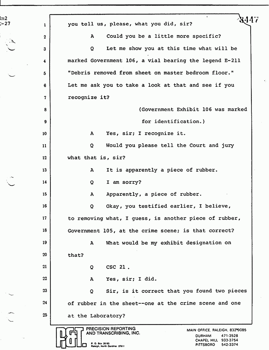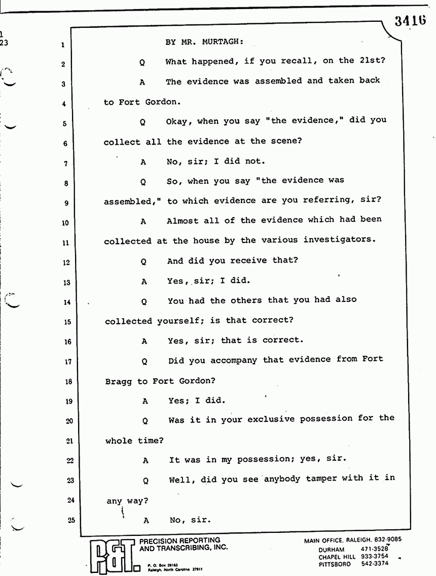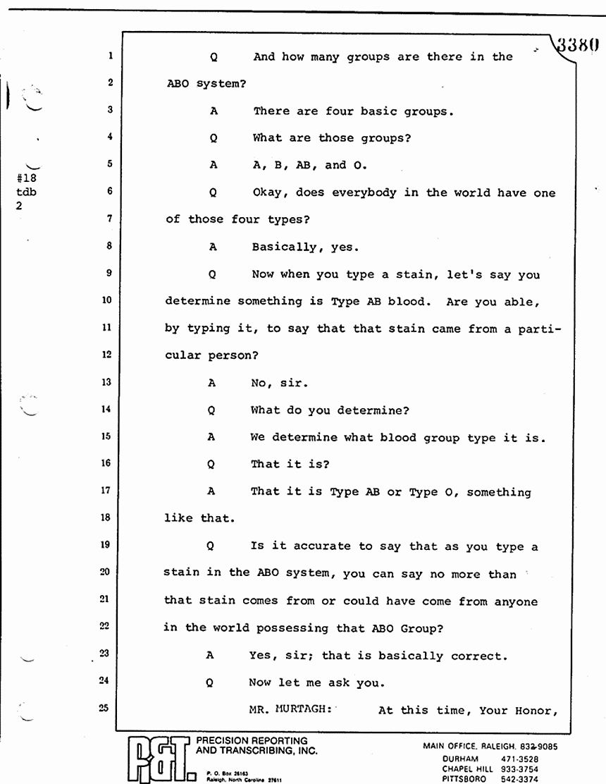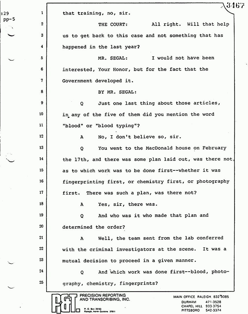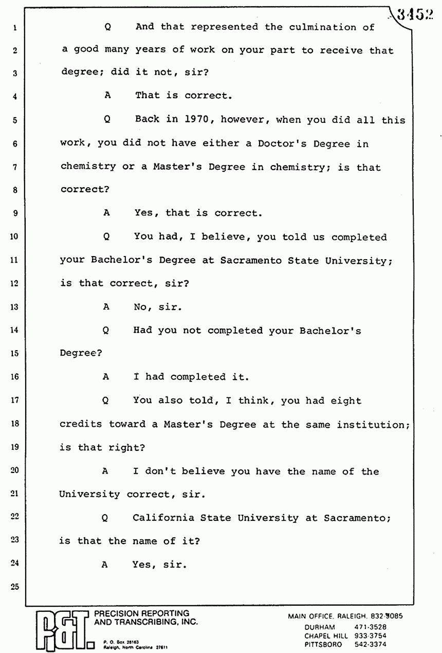 Q Is it your belief that you made no error in the processing of blood stains that you have testified to here in court today?