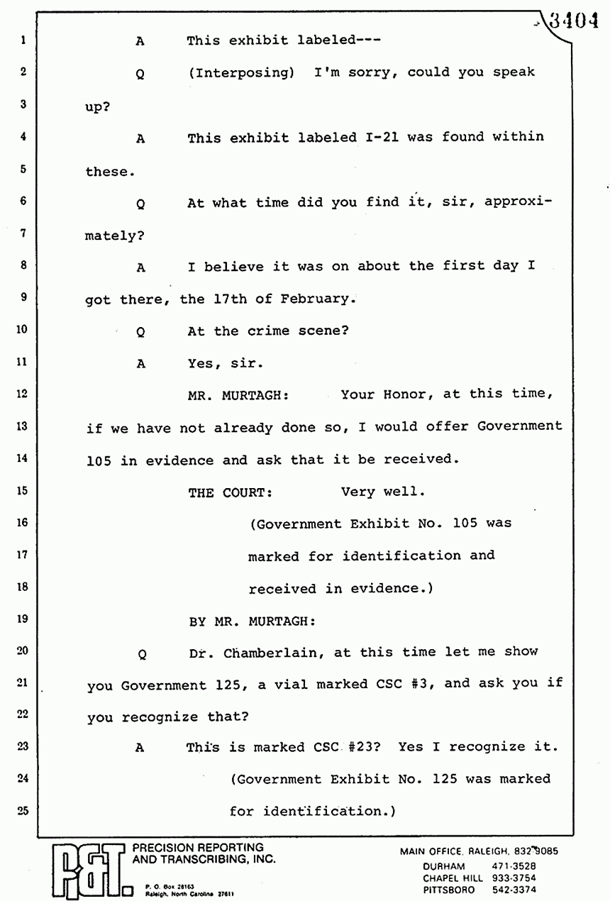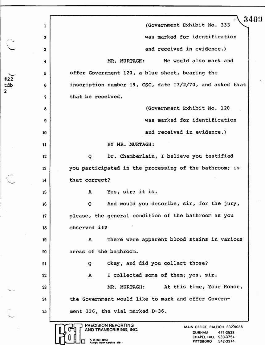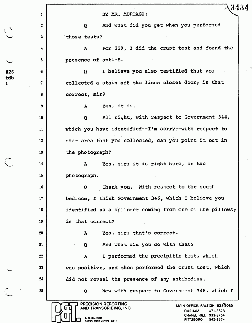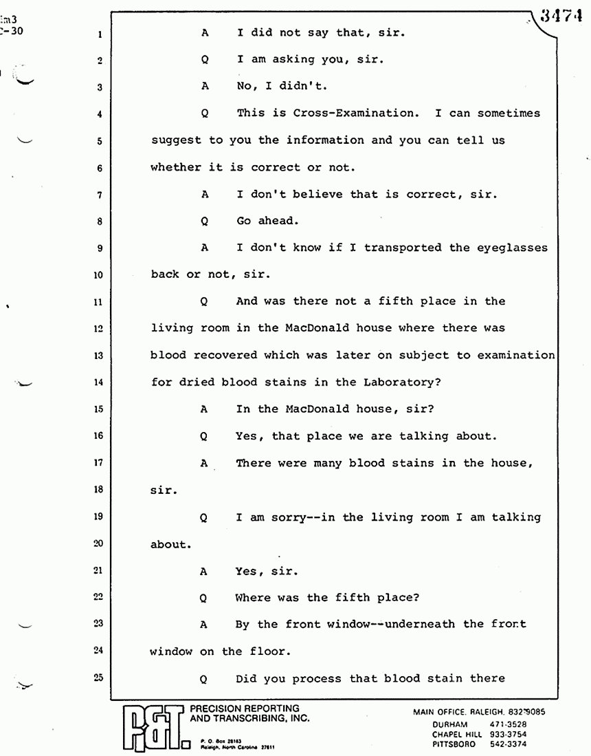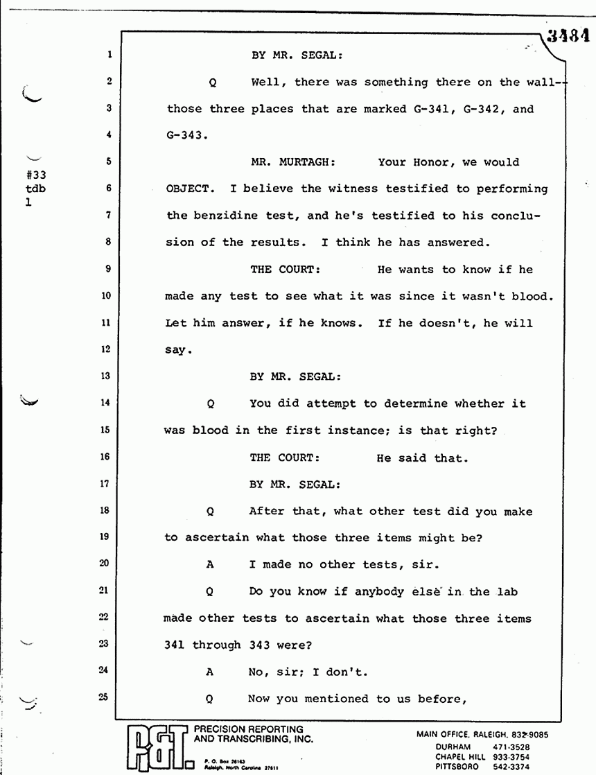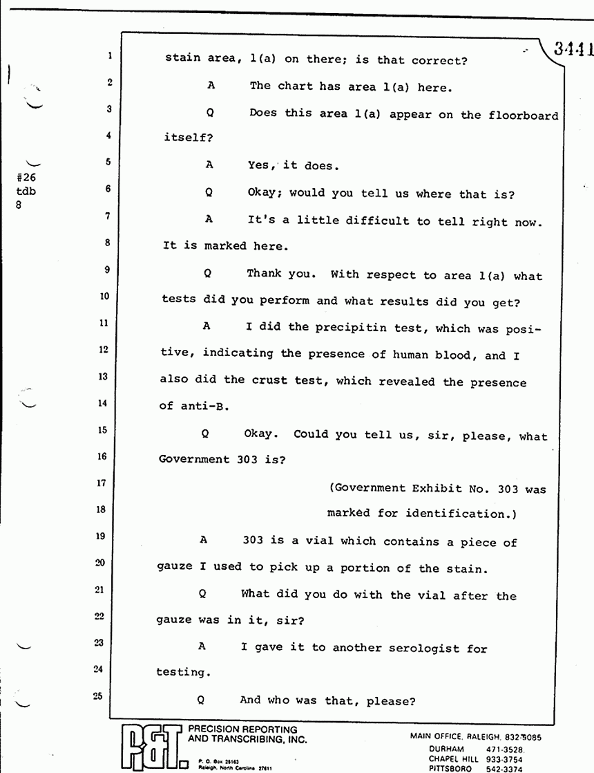 Q All right, let me ask a couple of other questions. Dr. Chamberlain, there are several hundred of these tests that you performed for dried blood stains, were there not, that you participated in performing tests?
