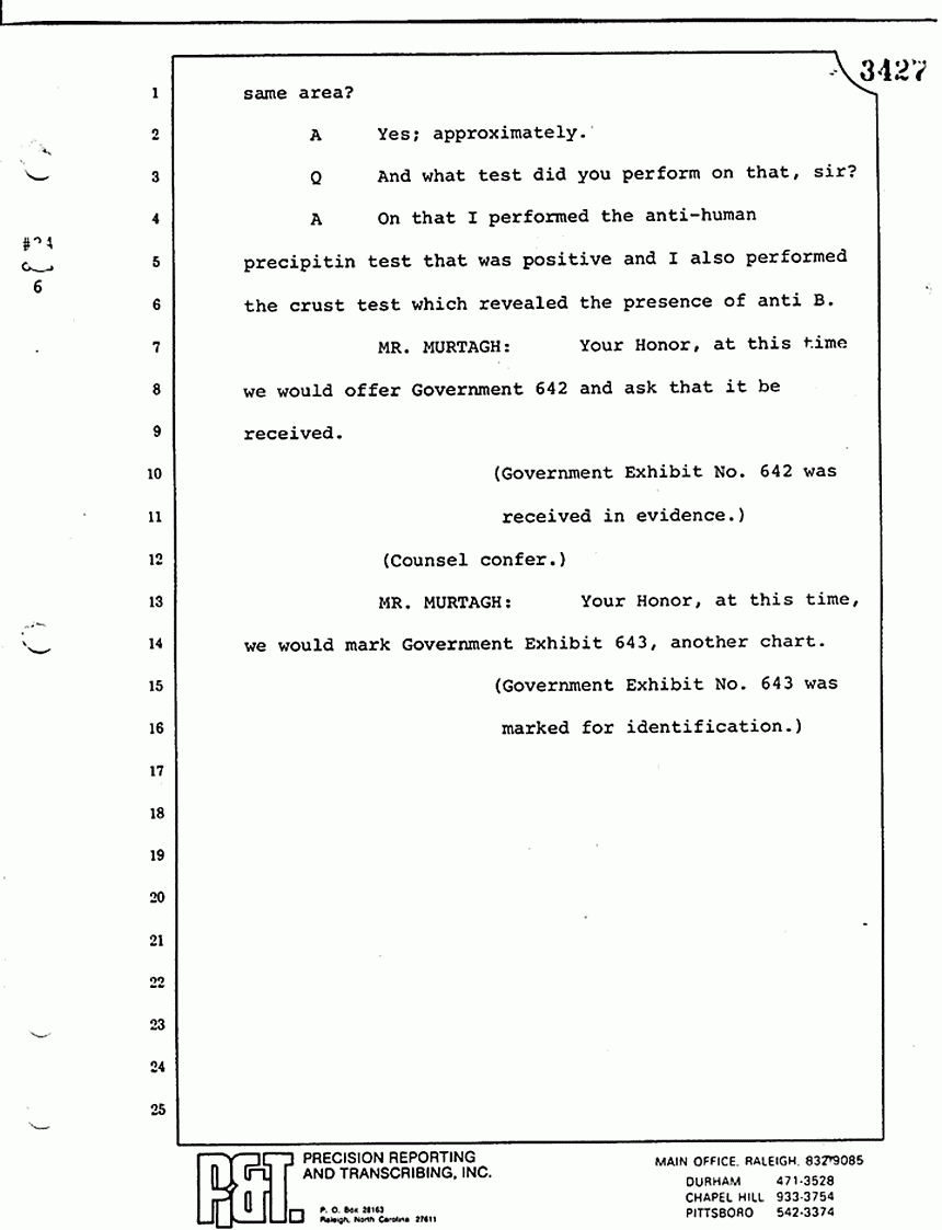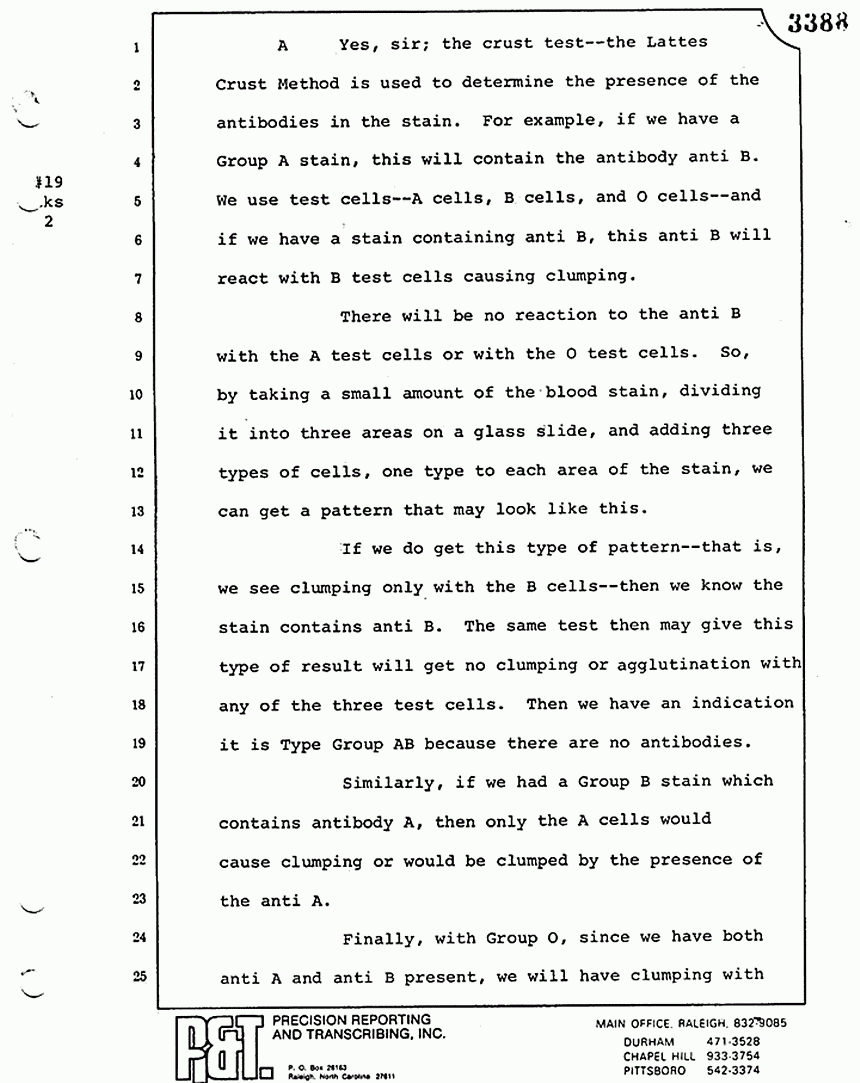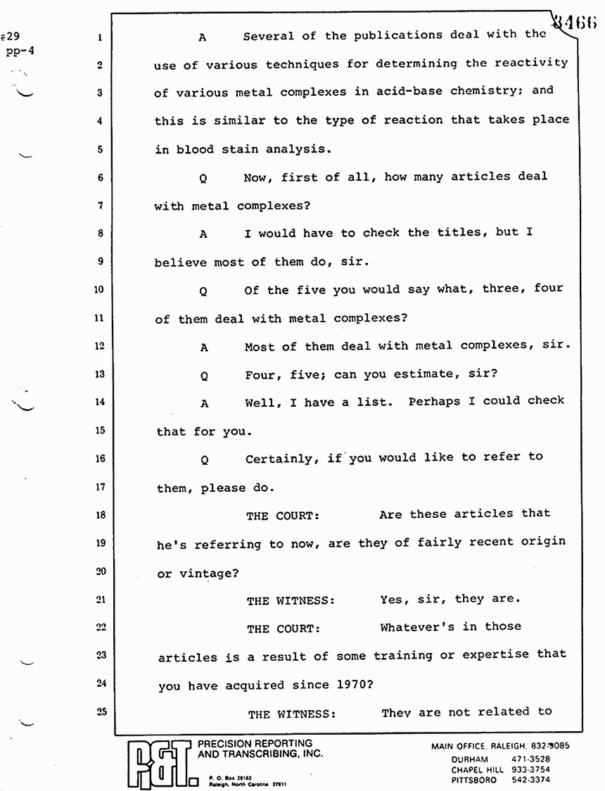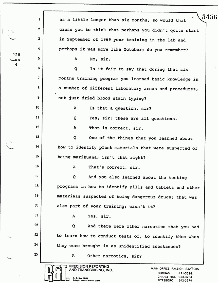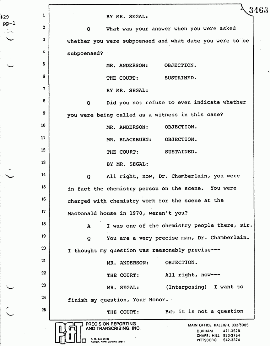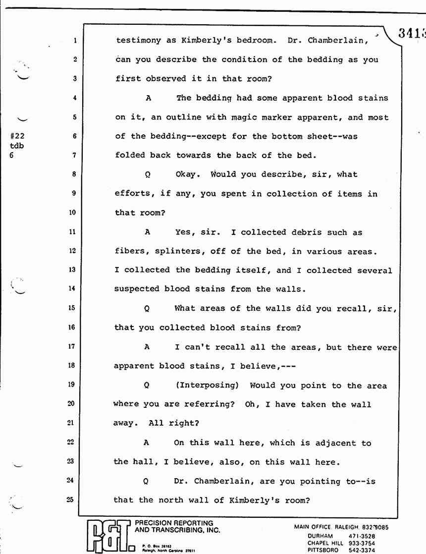 Q All right, let me ask a couple of other questions. Dr. Chamberlain, there are several hundred of these tests that you performed for dried blood stains, were there not, that you participated in performing tests?