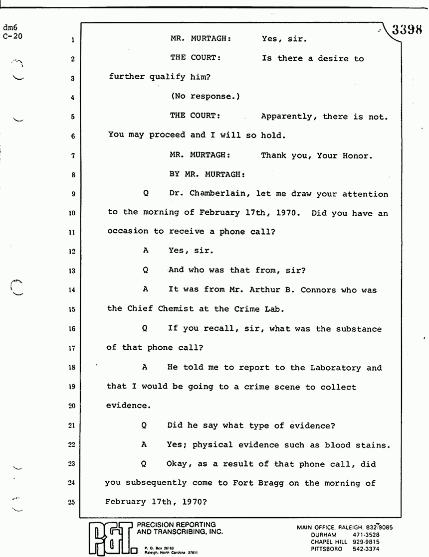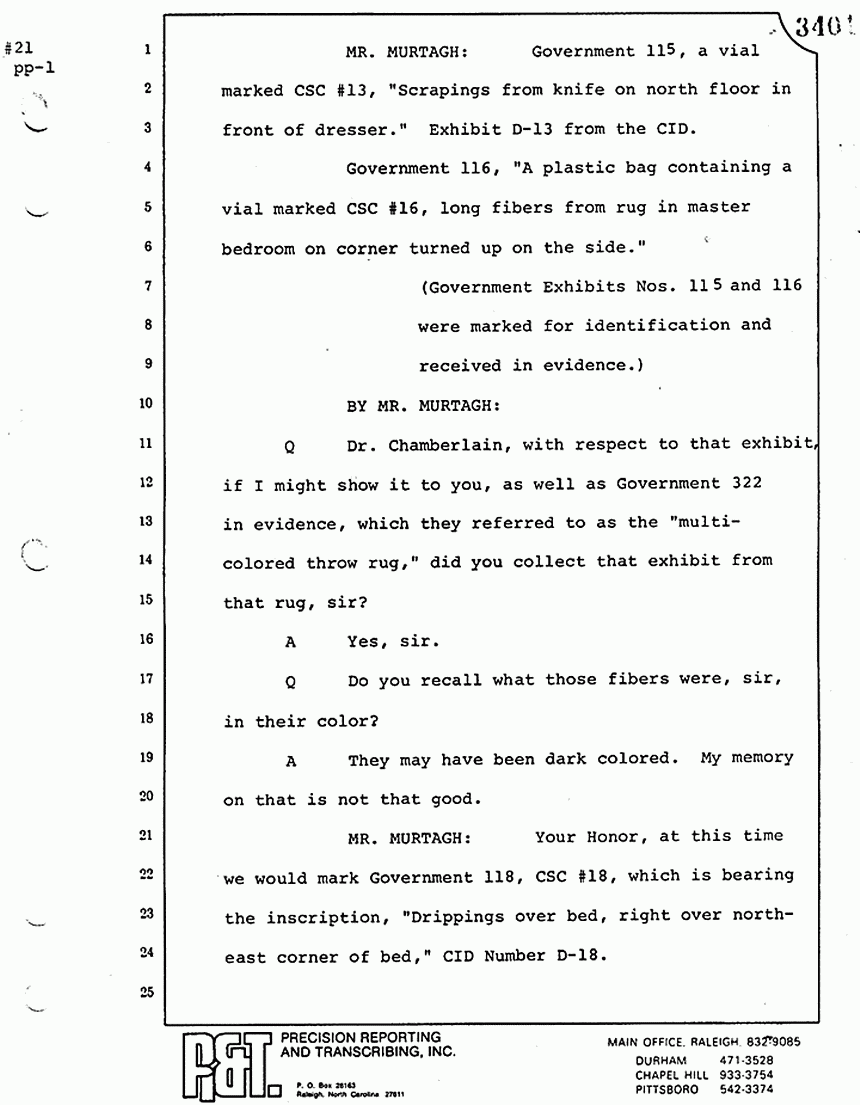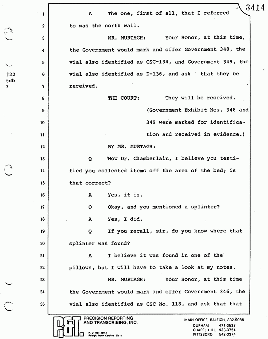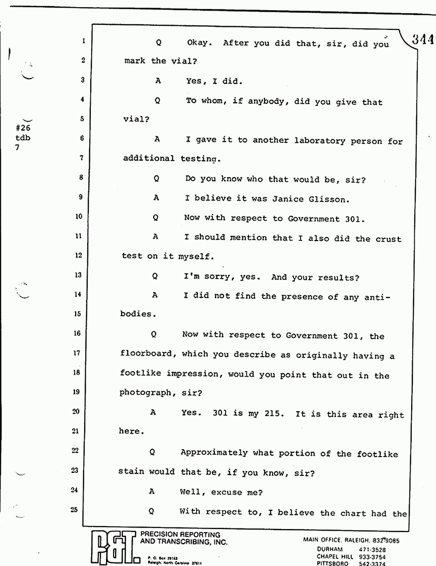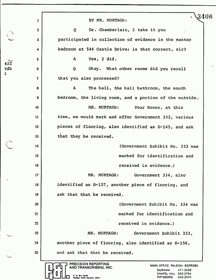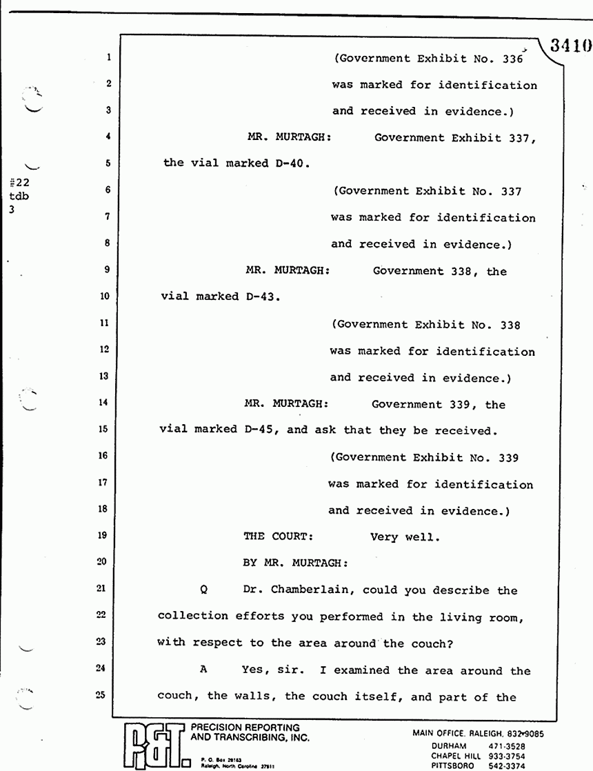 Q All right, let me ask a couple of other questions. Dr. Chamberlain, there are several hundred of these tests that you performed for dried blood stains, were there not, that you participated in performing tests?