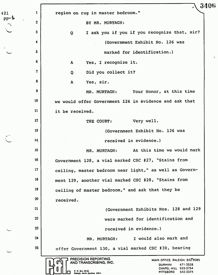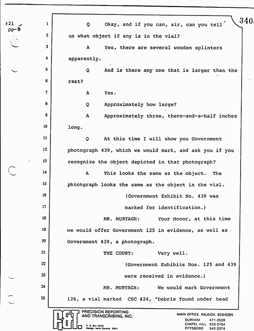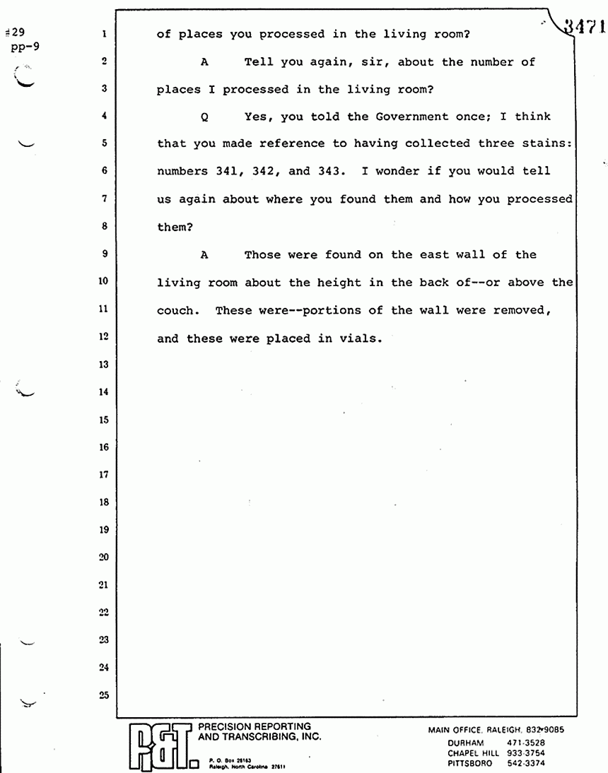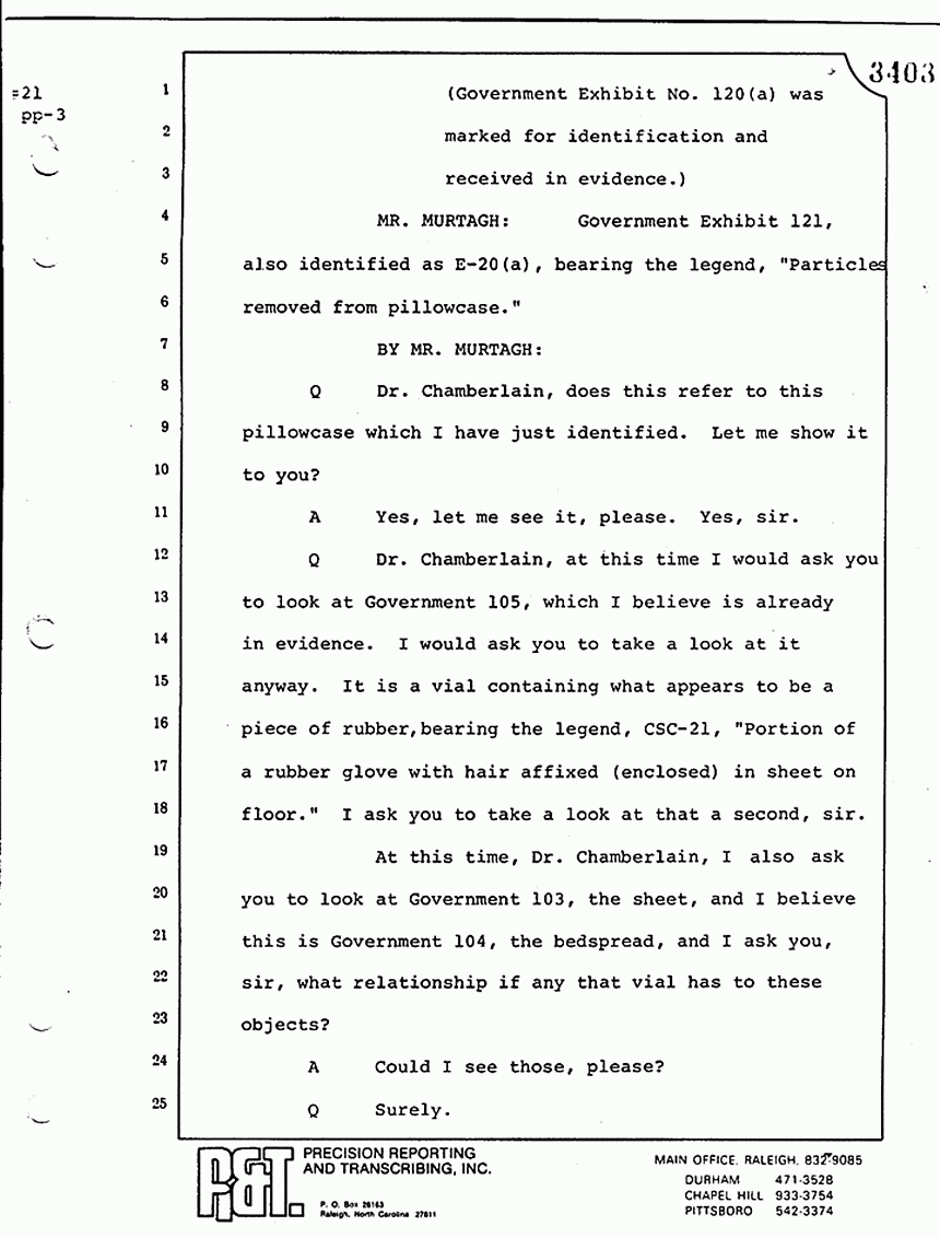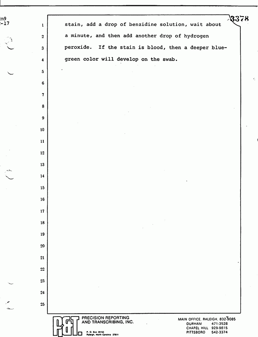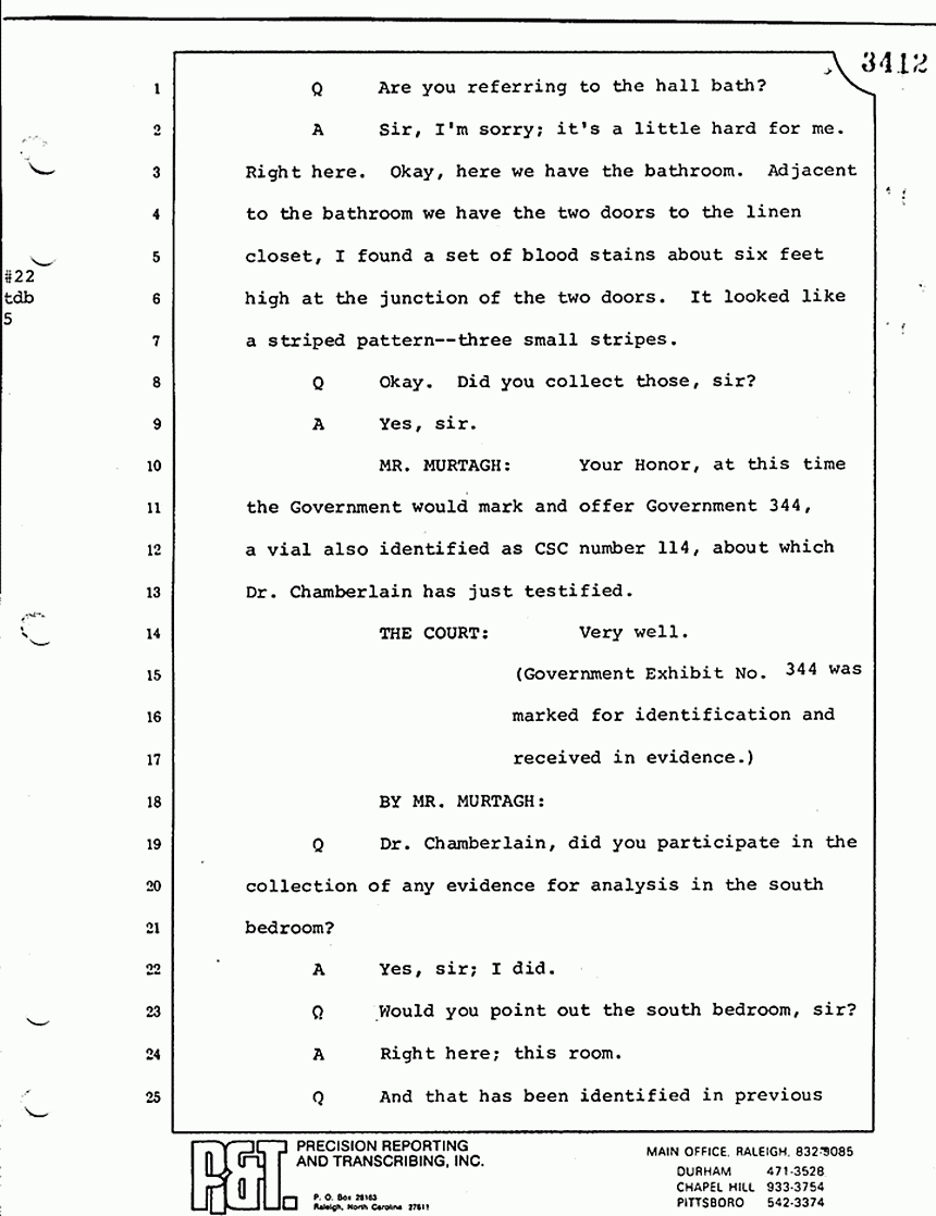 Q All right, let me ask a couple of other questions. Dr. Chamberlain, there are several hundred of these tests that you performed for dried blood stains, were there not, that you participated in performing tests?
