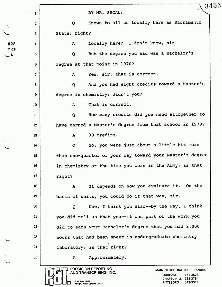 Q Okay, and about how many working hours did you spend in the laboratory during these courses?