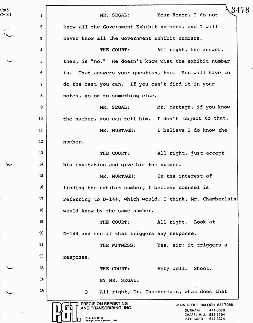 MR. SEGAL: Thank you, Dr. Chamberlain. I have nothing further for this witness, Your Honor.