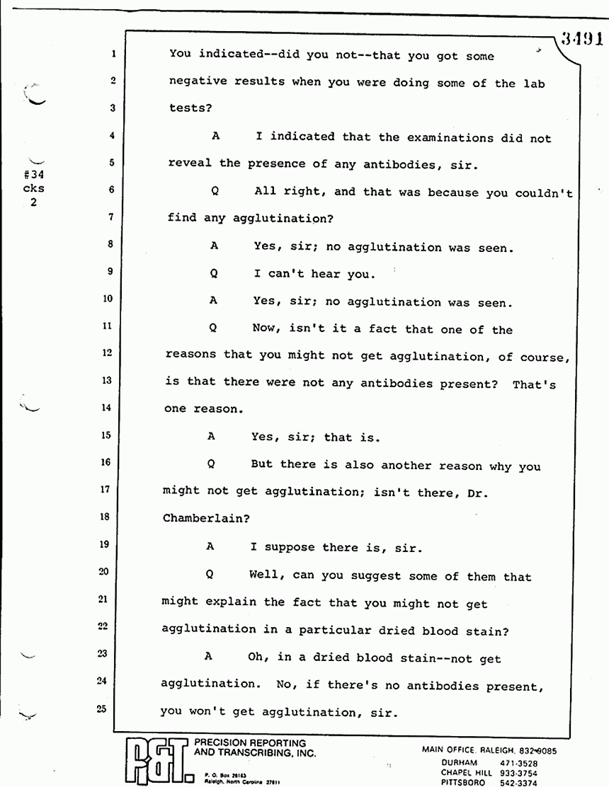 Q Now, isn't it a fact that one of the reasons that you might not get agglutination, of course, is that there were not any antibodies present? That's one reason.