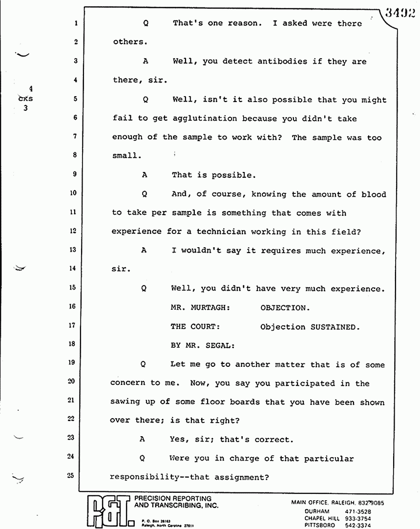 MR. SEGAL: I don't believe so. That is the bottom-line question. It is my request to ask what is his error factor in having processed these blood stains.