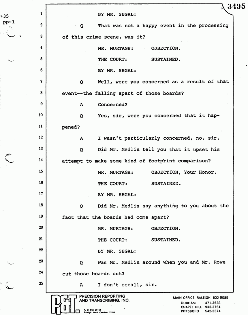 Q Did Mr. Medlin tell you that it upset his attempt to make some kind of footprint comparison?