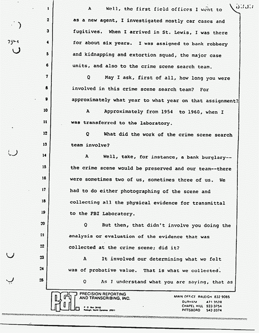 Q May I ask, first of all, how long you were involved in this crime scene search team? For approximately what year to what year on that assignment?