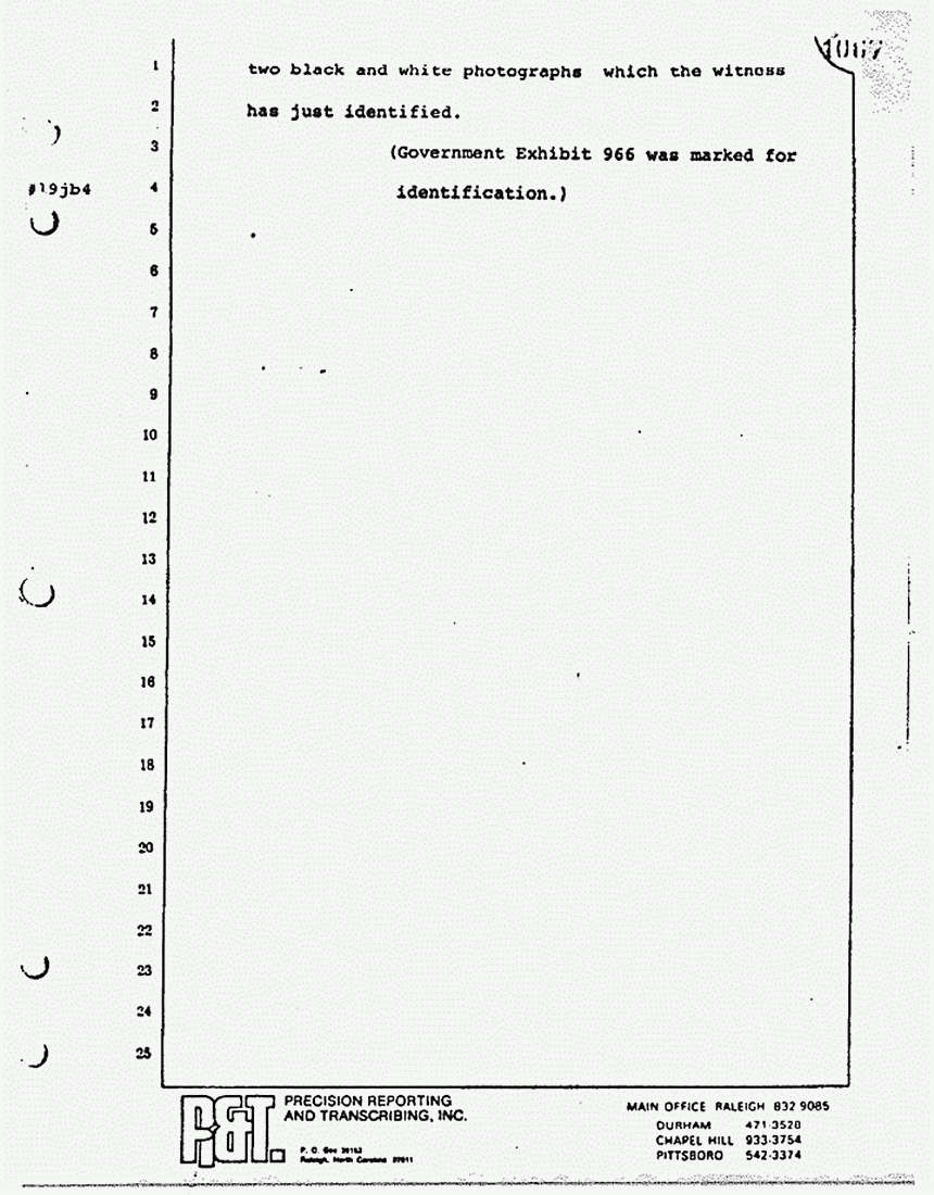MR. BLACKBURN: Your Honor, at this time we would mark for identification Government Exhibit 966 which again is a similar chart. It has the three photographs of the weapons on the right-hand side, and two black and white photographs which the witness has just identified.