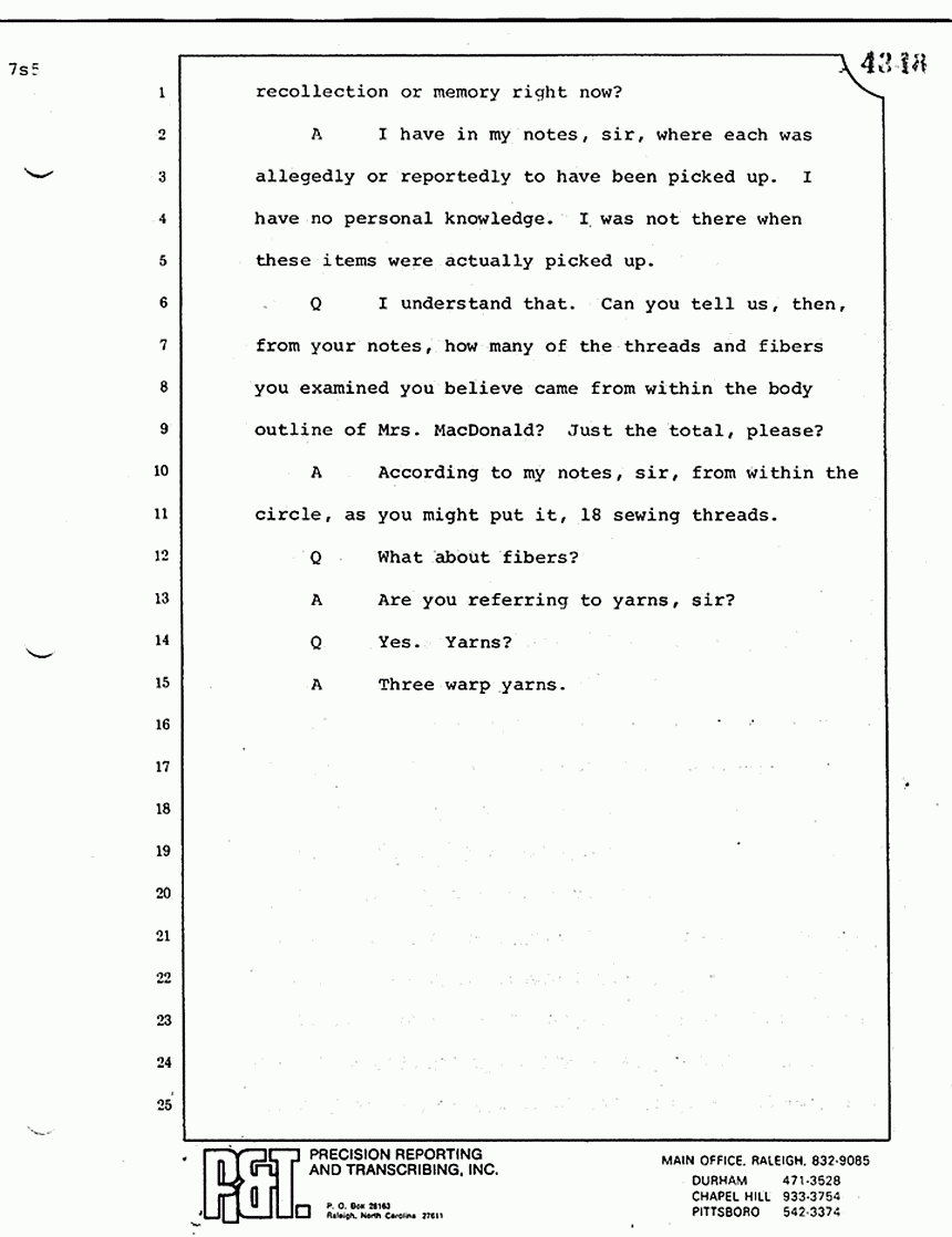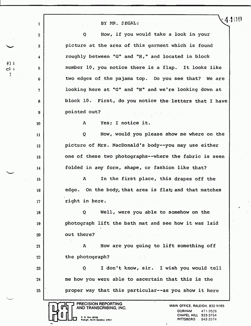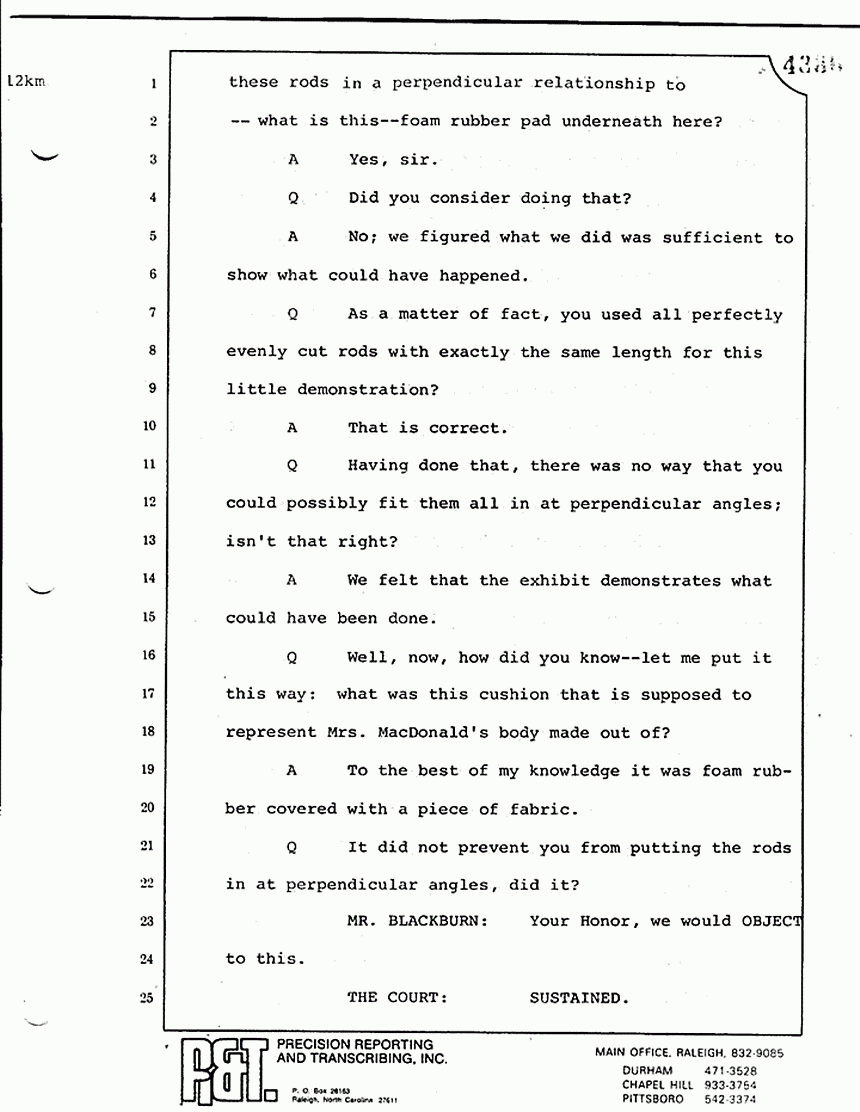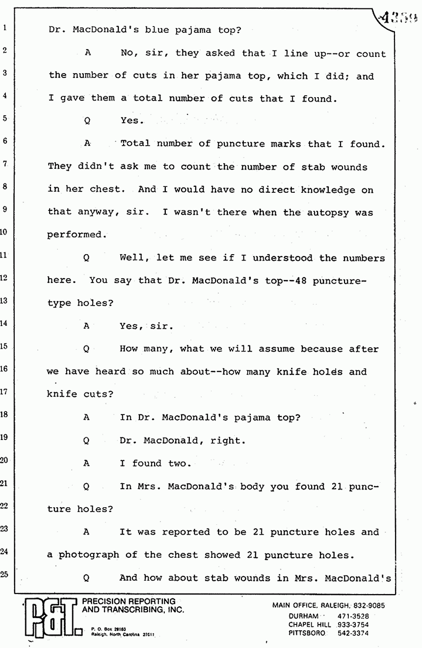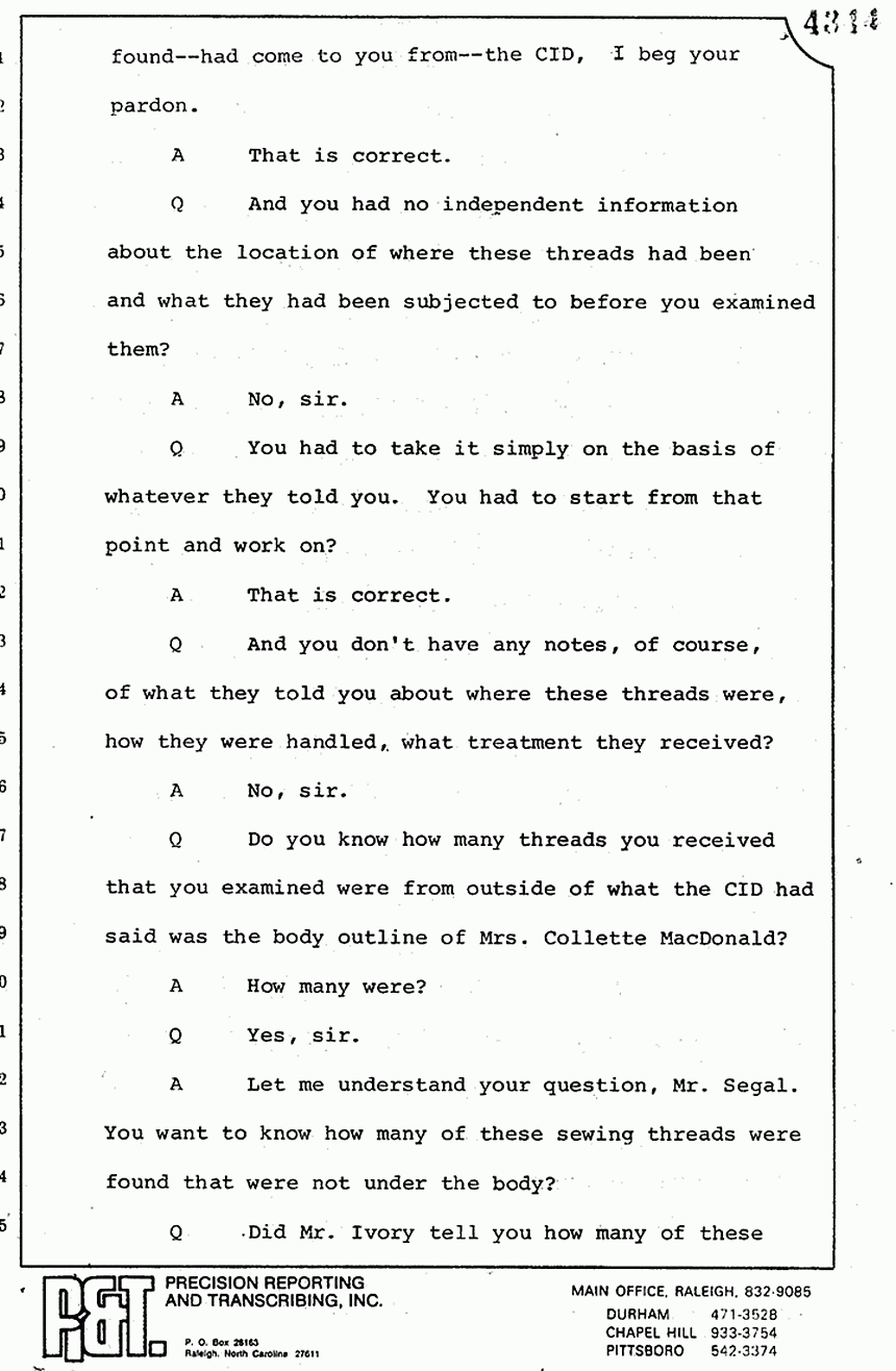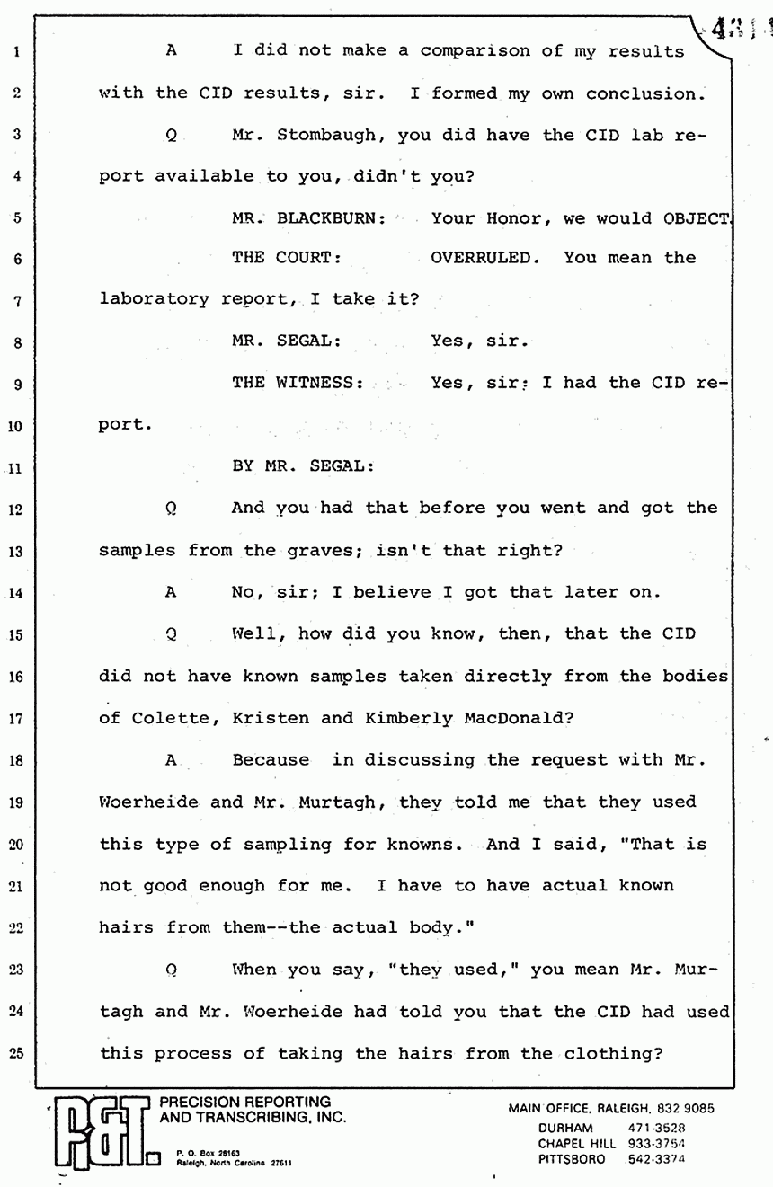 Q Well, how did you know, then, that the CID did not have known samples taken directly from the bodies of Colette, Kristen and Kimberly MacDonald?