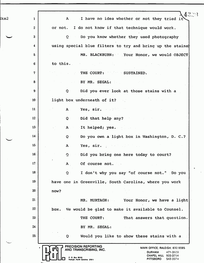 Q When you say, "they used," you mean Mr. Murtagh and Mr. Woerheide had told you that the CID had used this process of taking the hairs from the clothing?